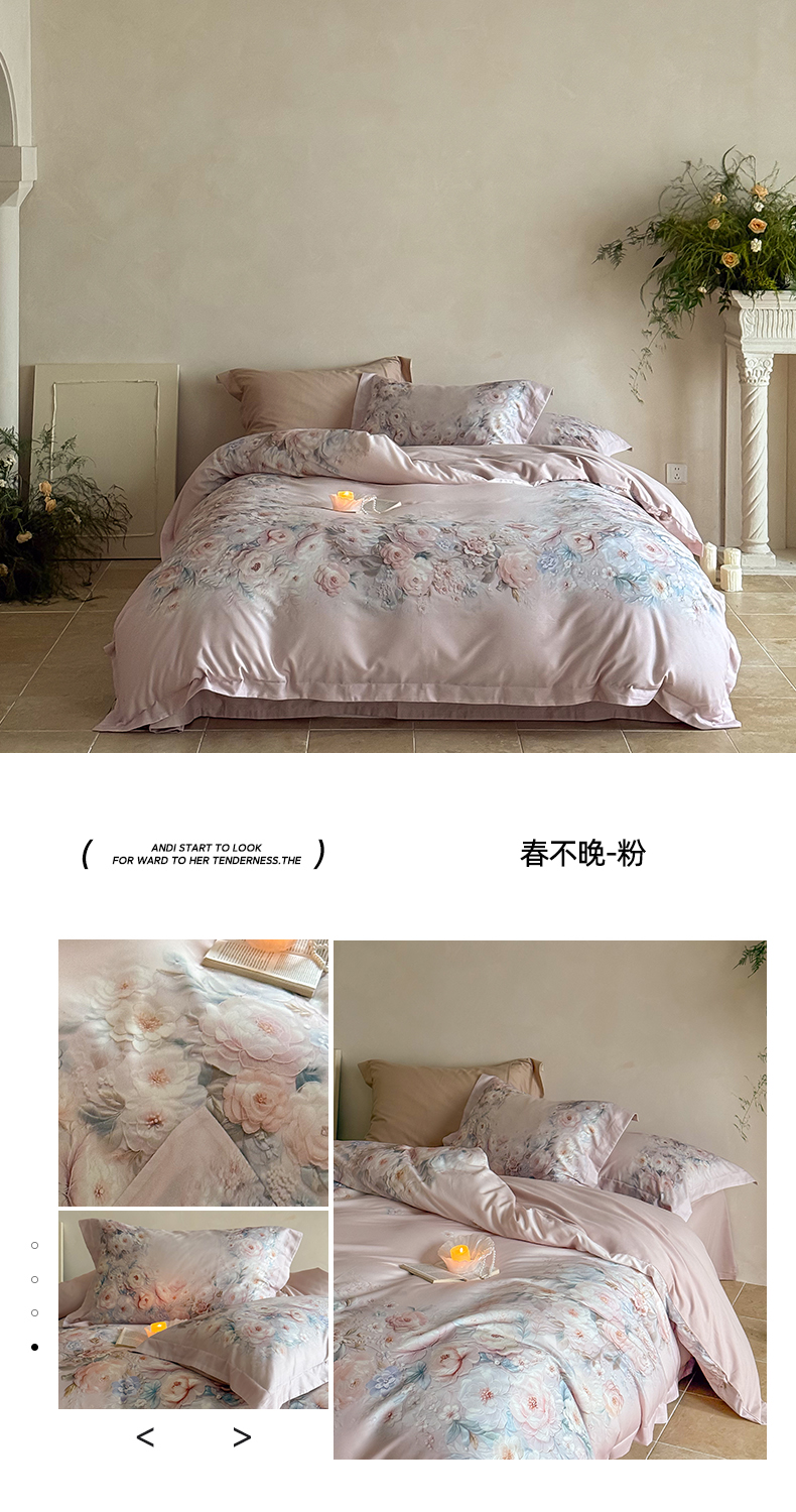 商品名称:禾时 2025新款天丝棉磨毛数码印花四件套 春不晚-粉