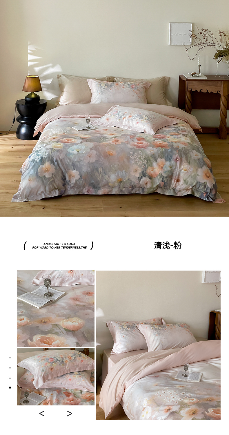 商品名称:禾时 2025新款天丝棉磨毛数码印花四件套 清浅-粉