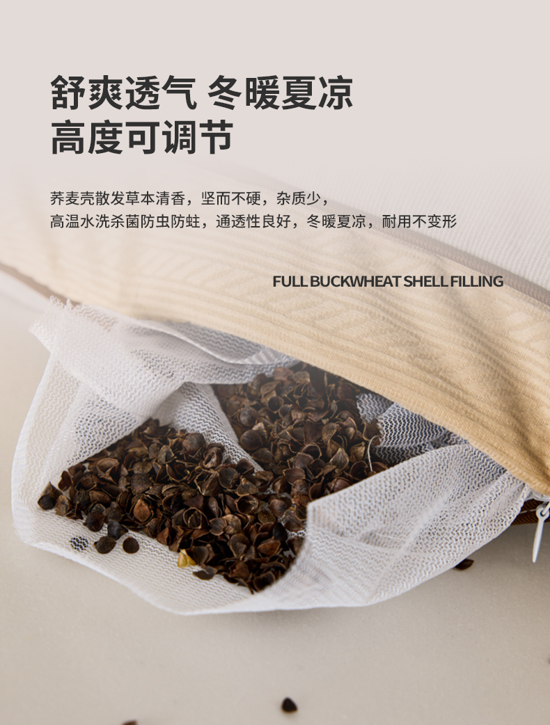 填充物:100%荞麦壳 2600g,整体重量约 2800g。尺寸:40x60cm 高度6-8cm 睡下4-6cm