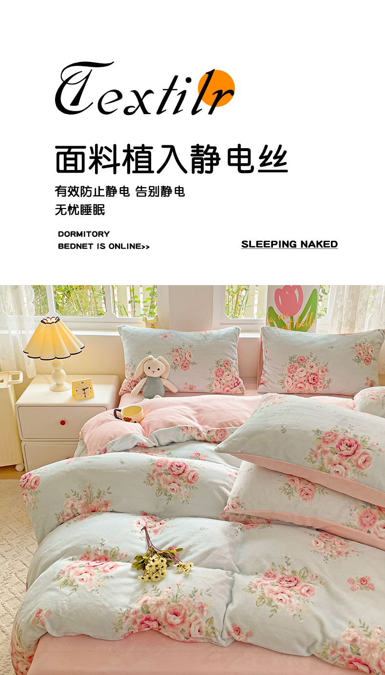 当前位置: 91家纺网 > 商品网购 > 床品套件 > 四件套 > 牛奶绒四件套 > 优选良品 2025新款小清新加厚高克重牛奶绒四件套直播热款电商热款叶子青青