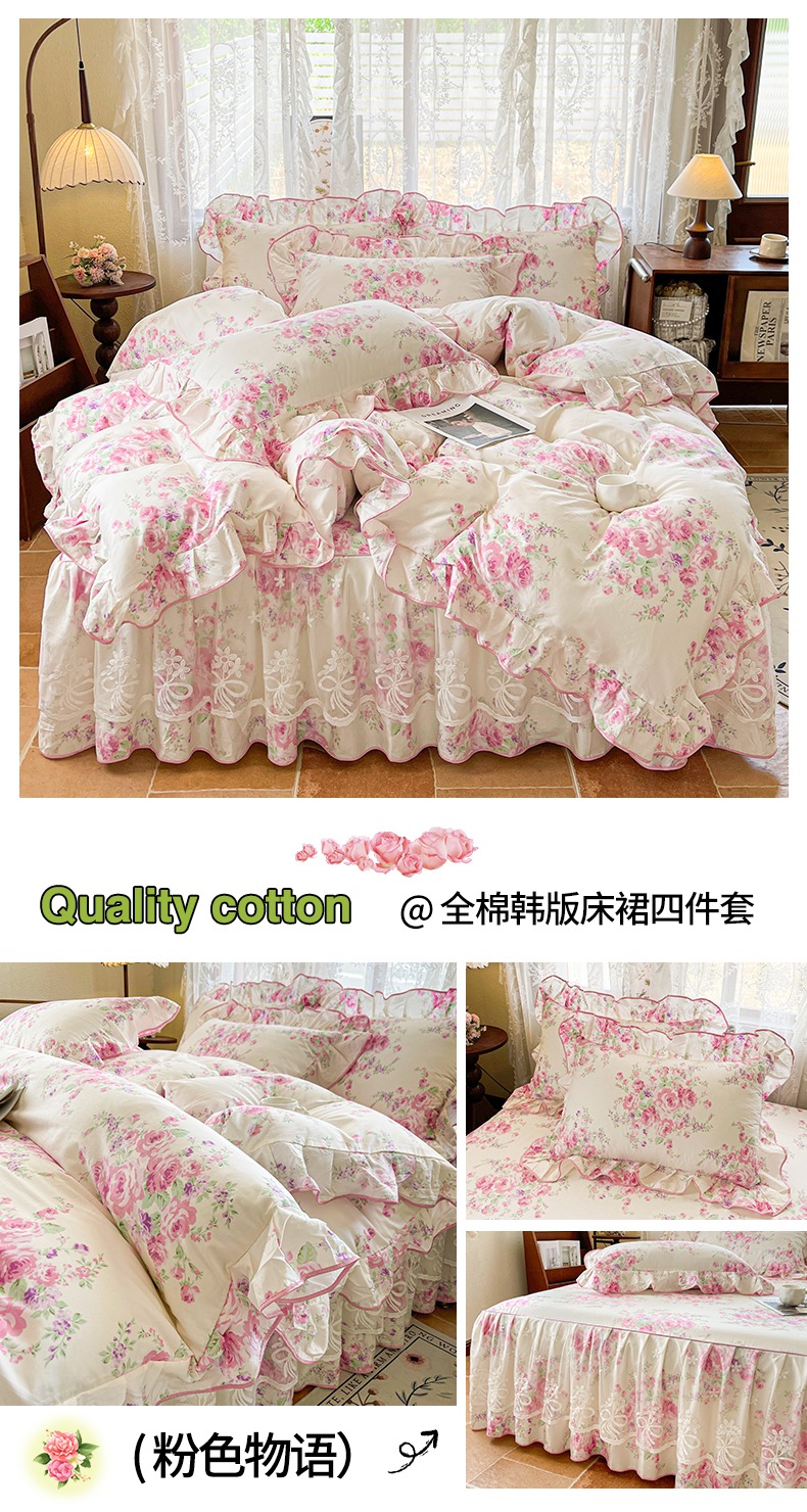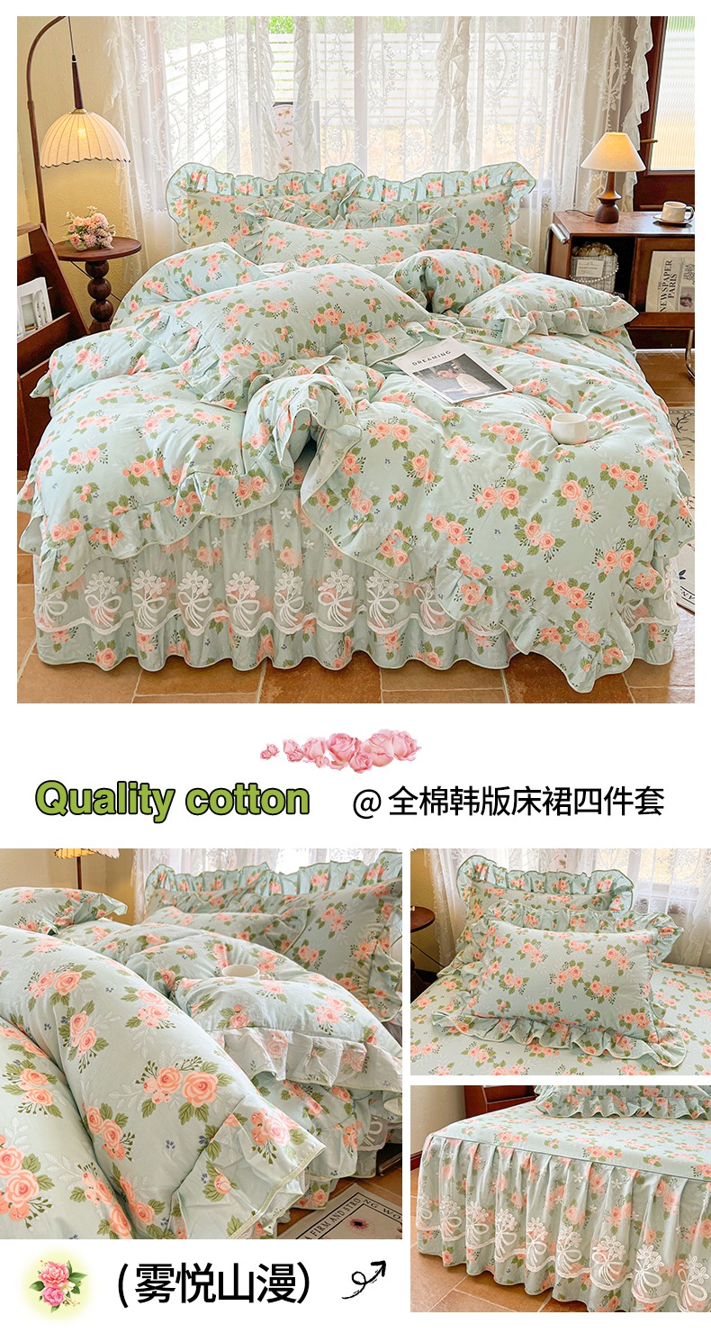 当前位置: 91家纺网 > 商品网购 > 床品套件 > 四件套 > 其它四件套 > 宜凡家纺 2025新款全棉韩版床裙四件套 悦香花初