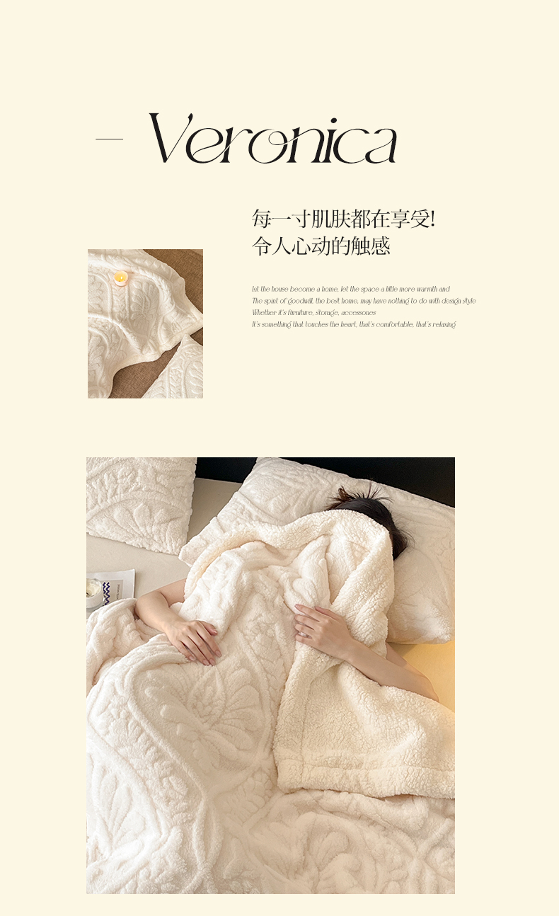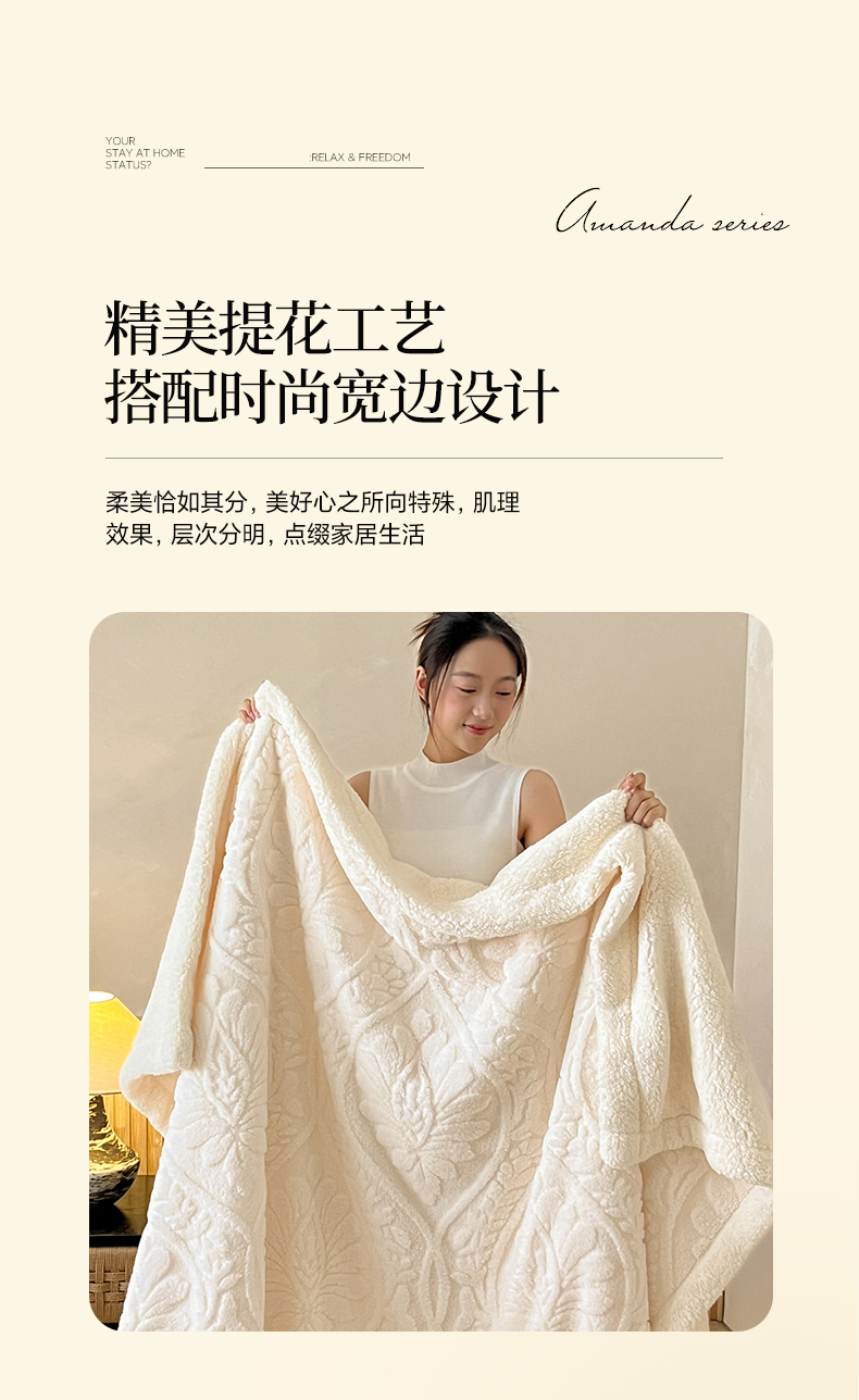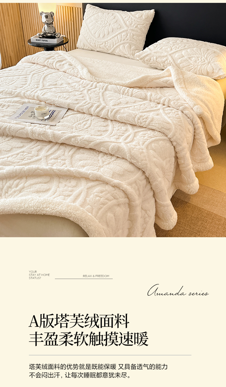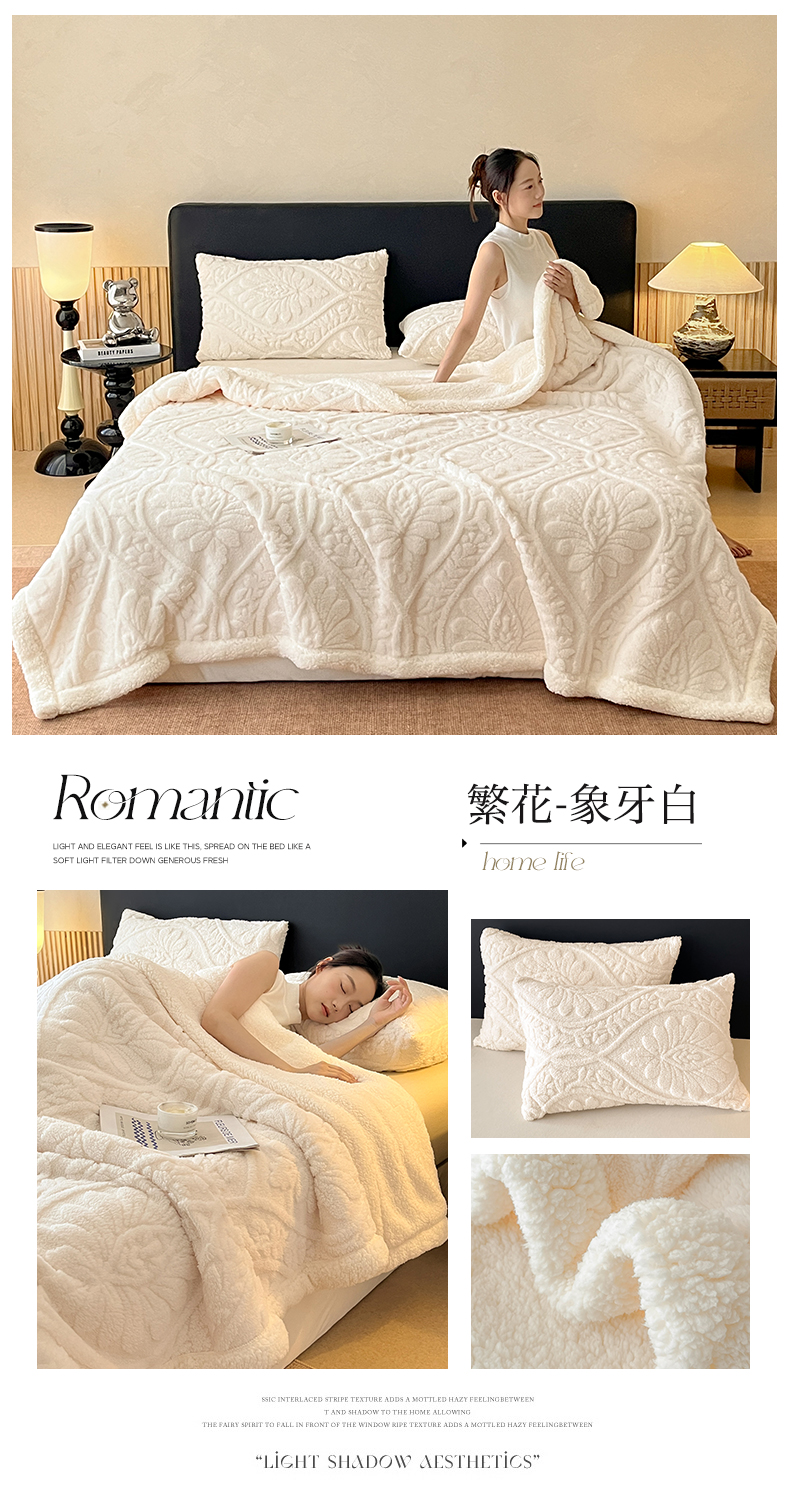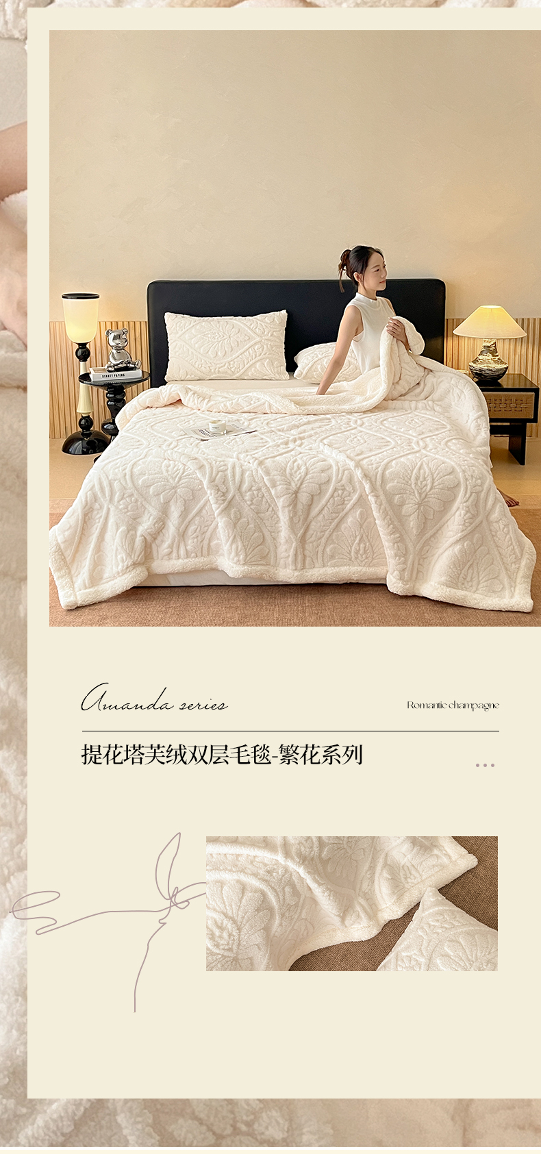 莱家富 2026新款双层提花塔芙绒绒羊羔绒毛毯-繁花系列双层毯(可供跨境压缩) 繁花-象牙白