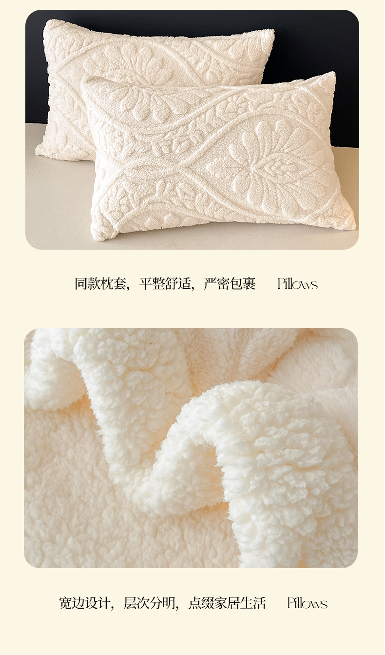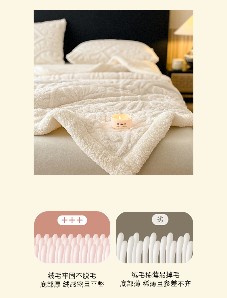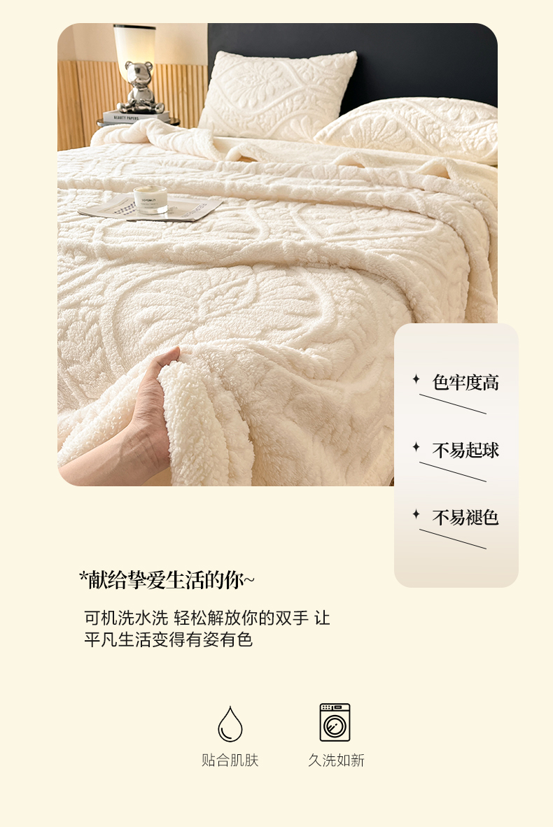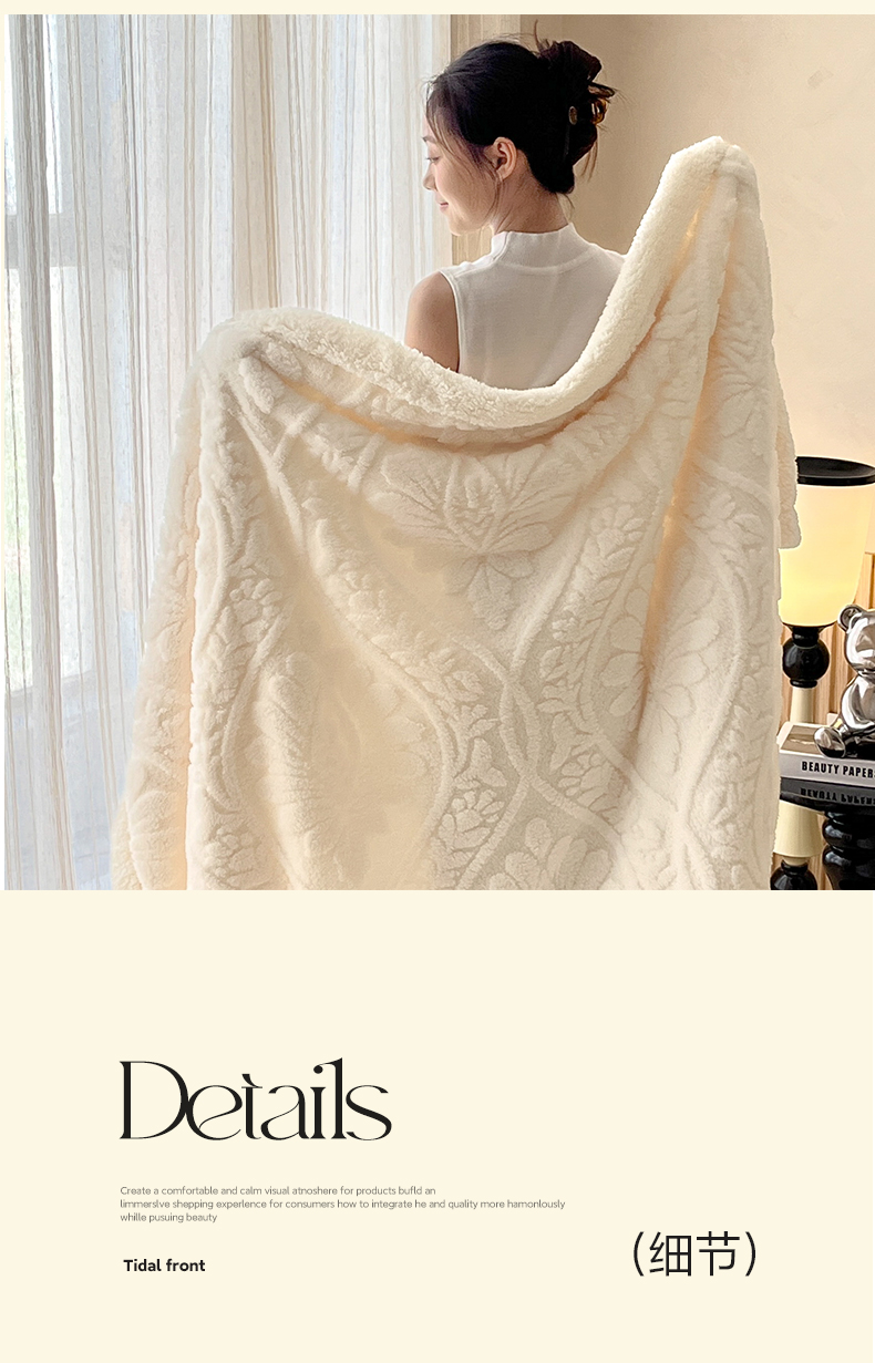 商品名称:莱家富 2026新款双层提花塔芙绒绒羊羔绒毛毯-繁花系列双层毯(可供跨境压缩) 繁花-象牙白