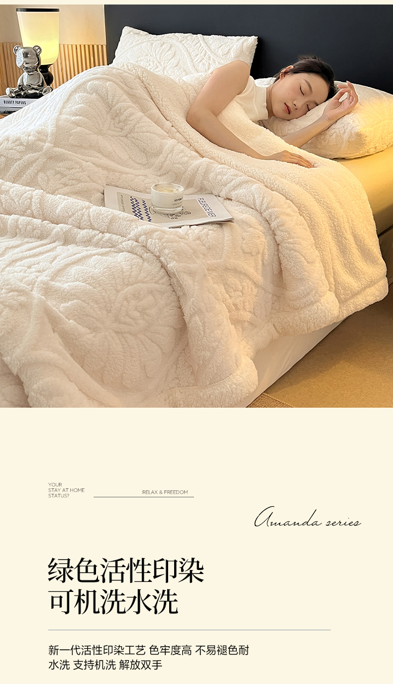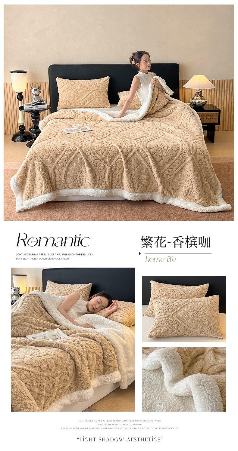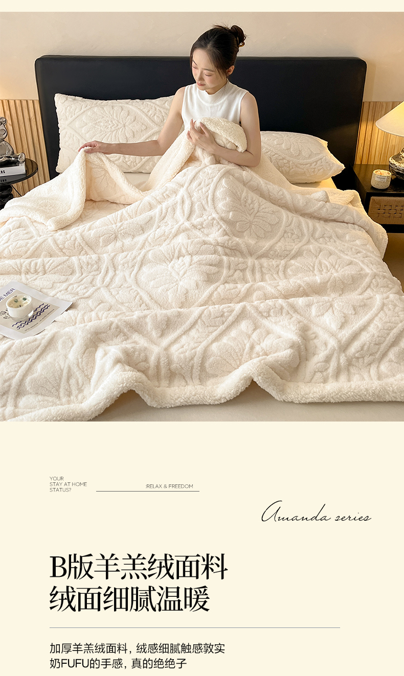 (总)莱家富 2026新款A类双层舒棉雕花绒羊羔绒暖绒毛毯毯子-梦境(可供跨境外贸抽空压缩爆款首选),梦境-粉玉,梦境-幻白,梦境-米驼,梦境-桑绿,梦境-雾灰