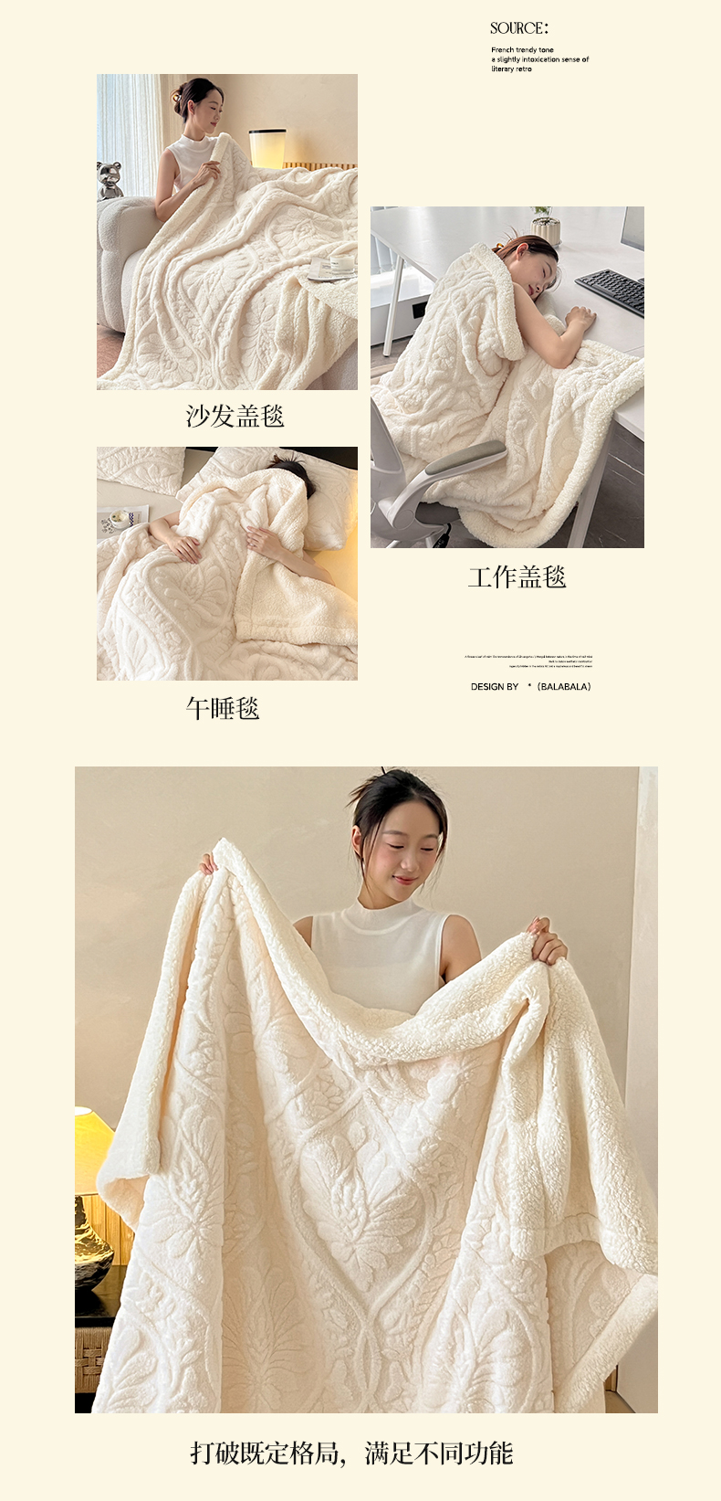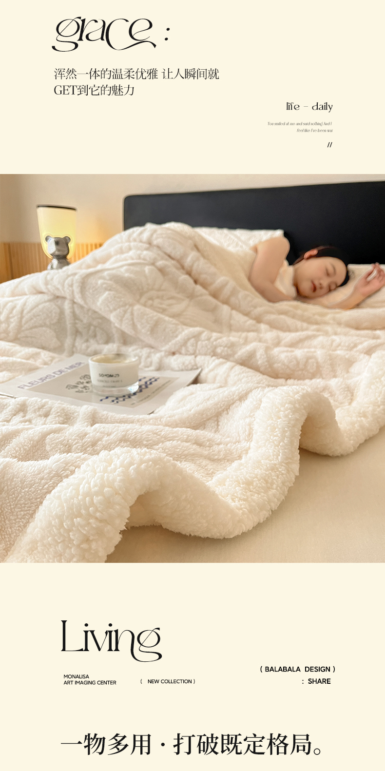 (总)莱家富 2026新款双层加厚阳离子提花毛毯羊羔绒毛毯盖毯办公室午休毯,浔彩-豆沙,浔彩-果绿,浔彩-灰色,浔彩-奶白,浔彩-天蓝,浔彩-驼色