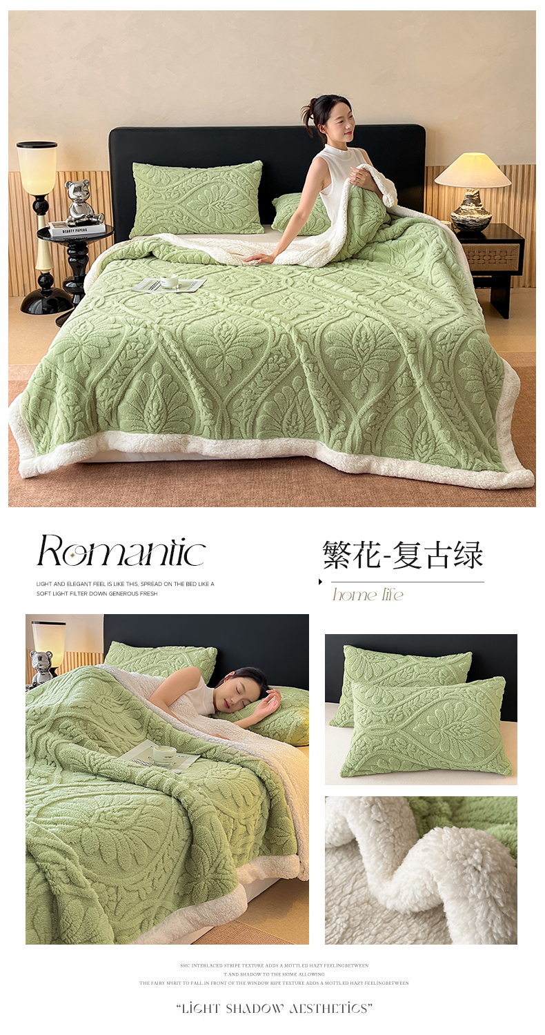 (总)莱家富 2026新款加厚双层复合毯舒棉绒剪花毛毯,兰色,绿色,米色,深灰色,樱花粉,紫色