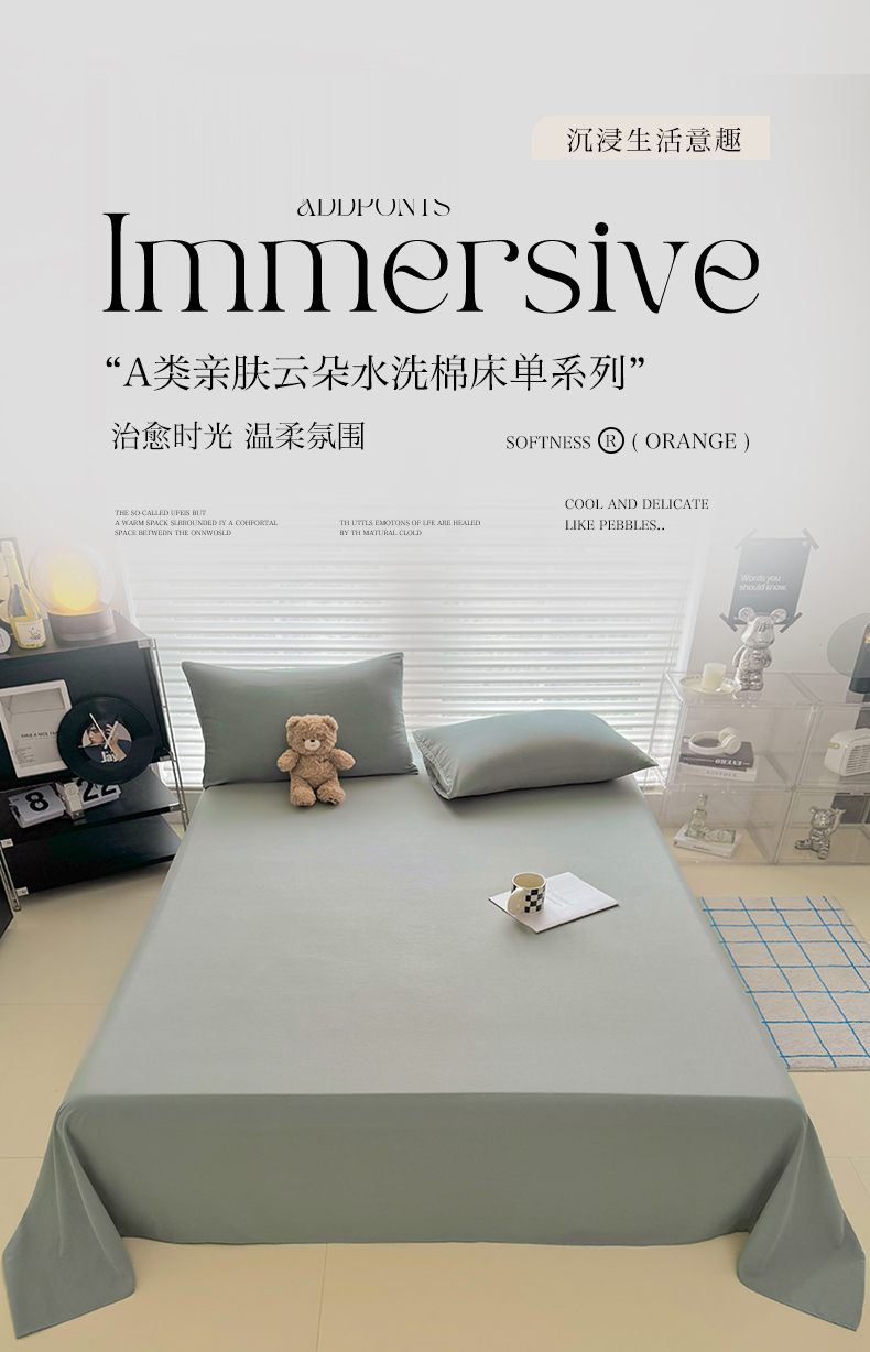商品名称:十一家居2025年新款ins风A类母婴级亲肤云朵水洗棉单床单 杏粉