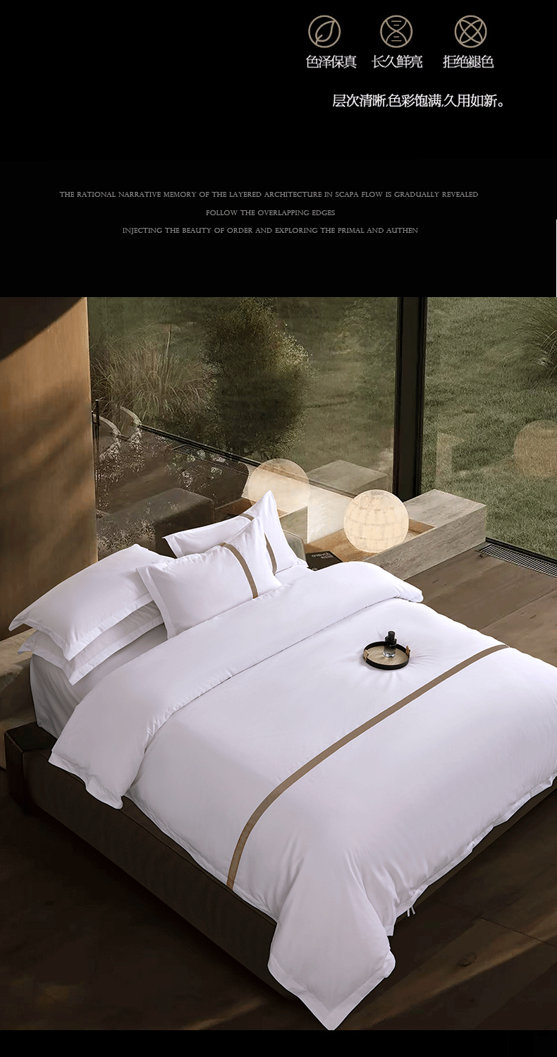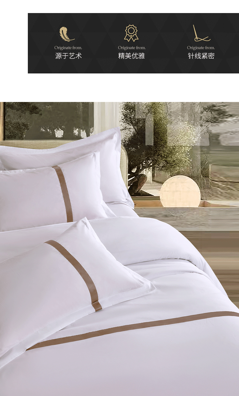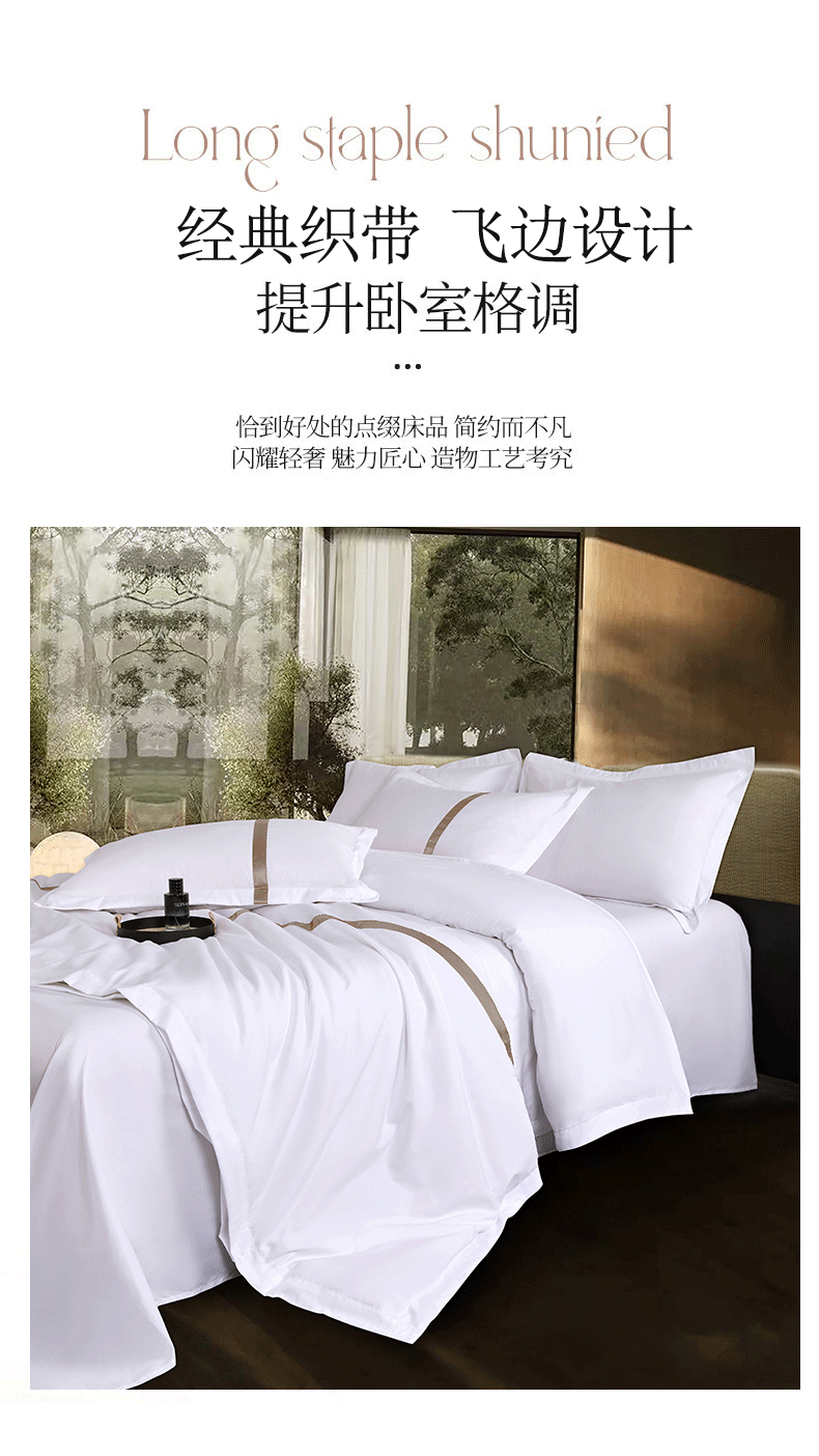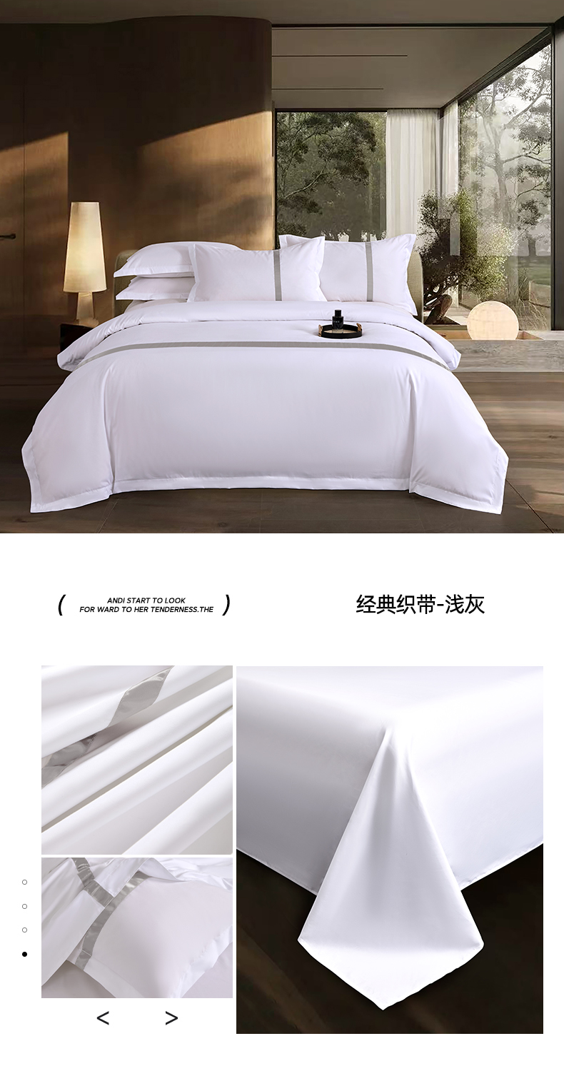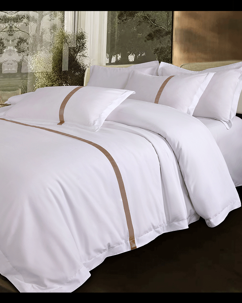当前位置: 91家纺网 > 商品网购 > 床品套件 > 四件套 > 其它四件套 > 罗菲尼酒店用品 2025新款高仿棉织带酒店宾馆四件套套件经典织带款 经典织带-咖啡