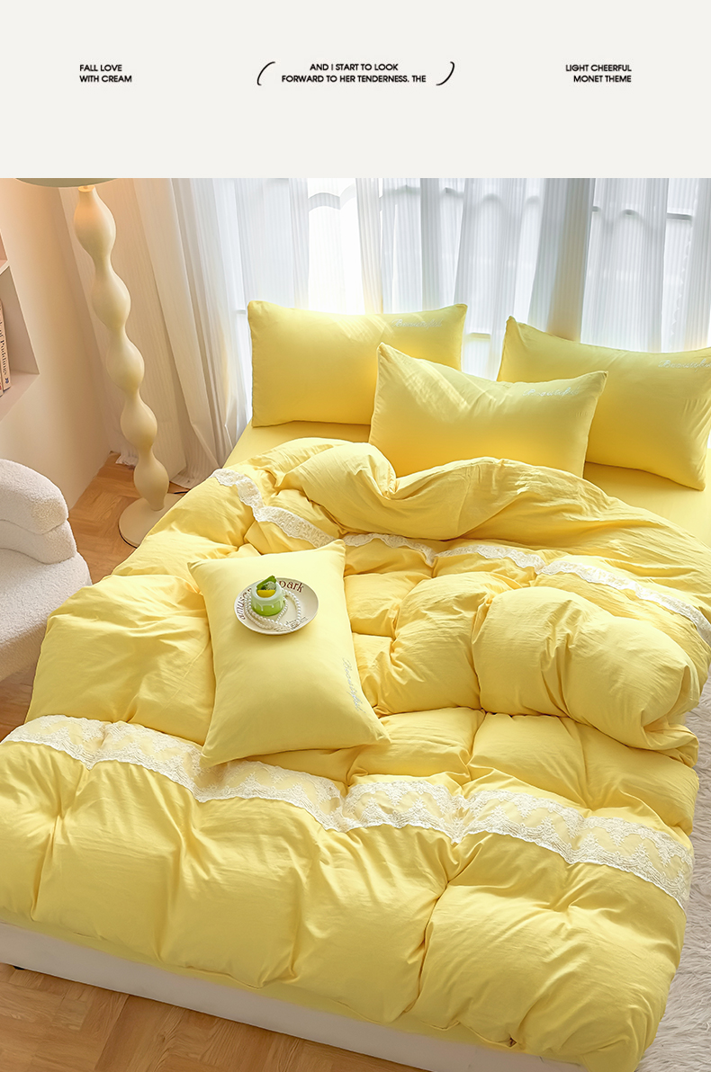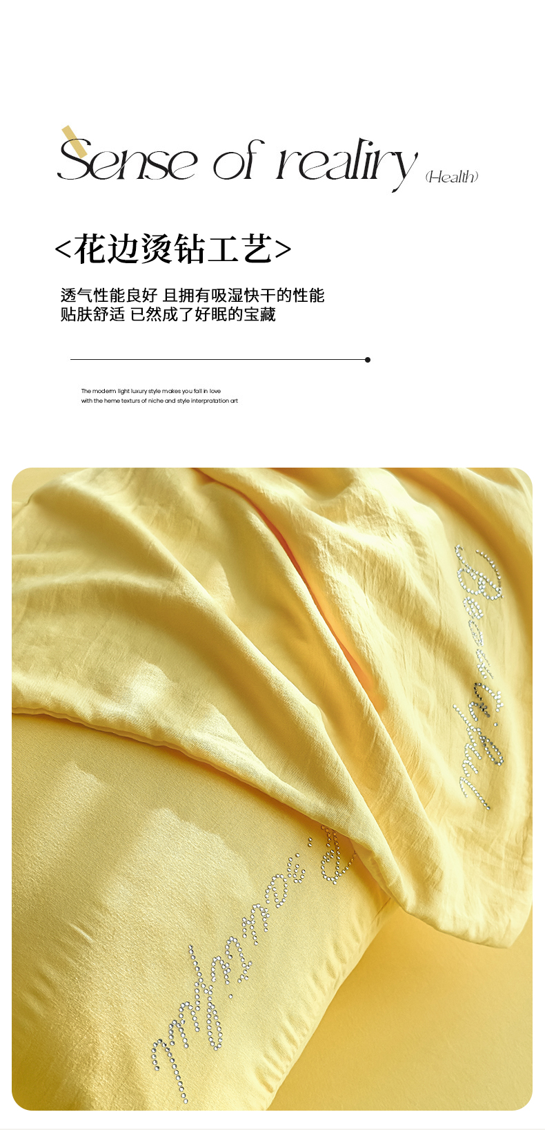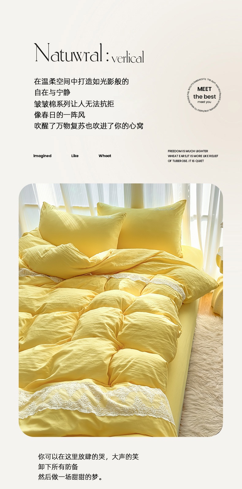 当前位置: 91家纺网 > 商品网购 > 床品套件 > 四件套 > 水洗棉四件套 > 灿哈 2025新款烫钻蕾丝花边水洗棉四件套 柠檬黄