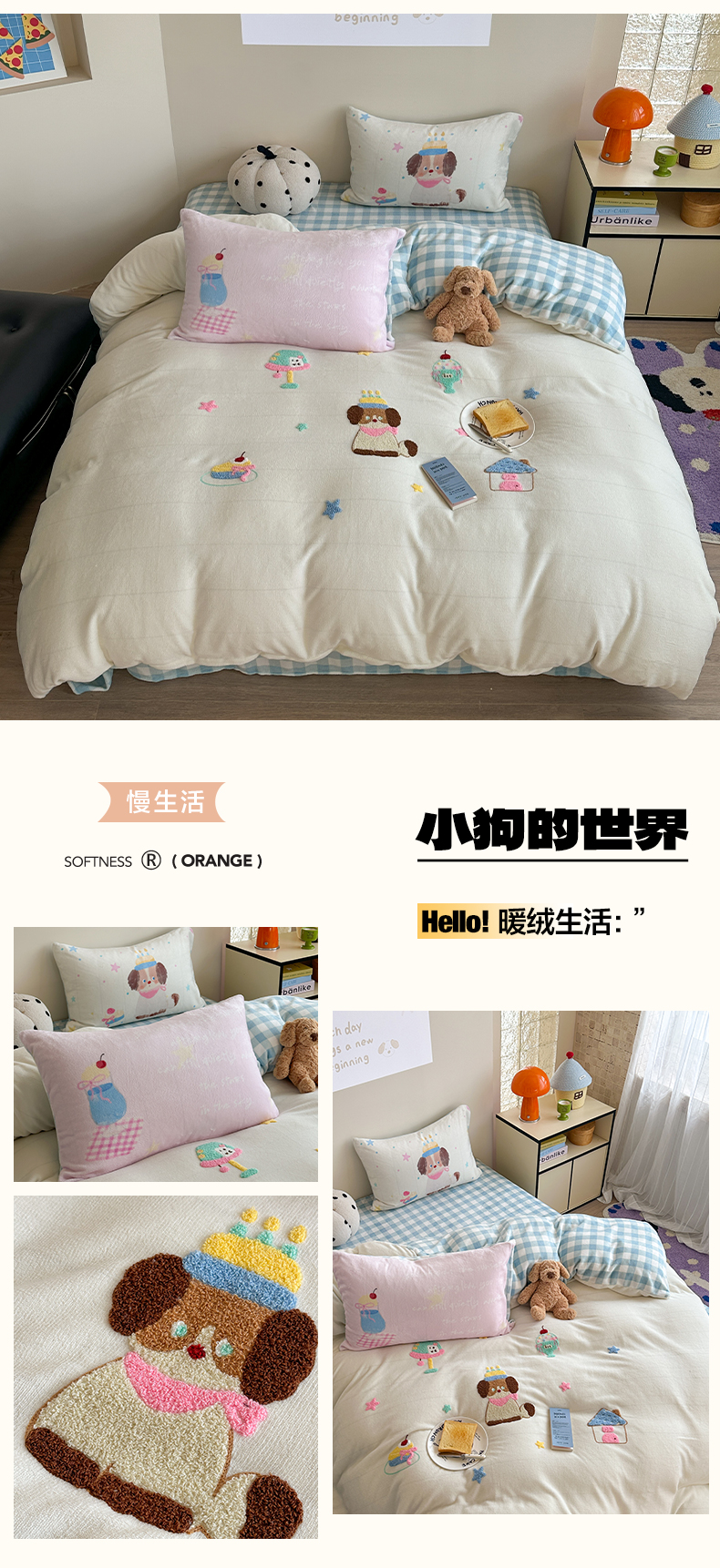 商品名称:美乐迪家纺 2025新款牛奶绒卡通绣花四件套 小狗的世界
