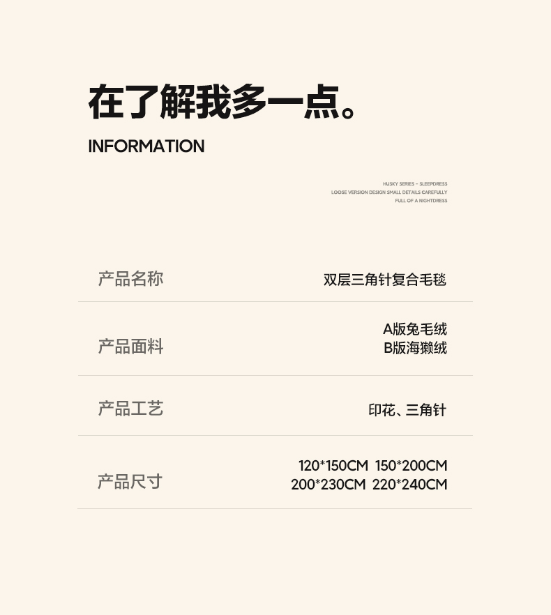商品名称:晨曦家纺 2025新款兔毛绒海獭绒双层毛毯三角针复合毛毯 水墨画-浅咖