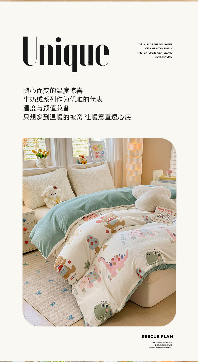 • 91家纺网 家纺一手货源 找家纺 金盛纺 2025新款高克重牛奶绒印花系列单被套(可定制) 大宝贝