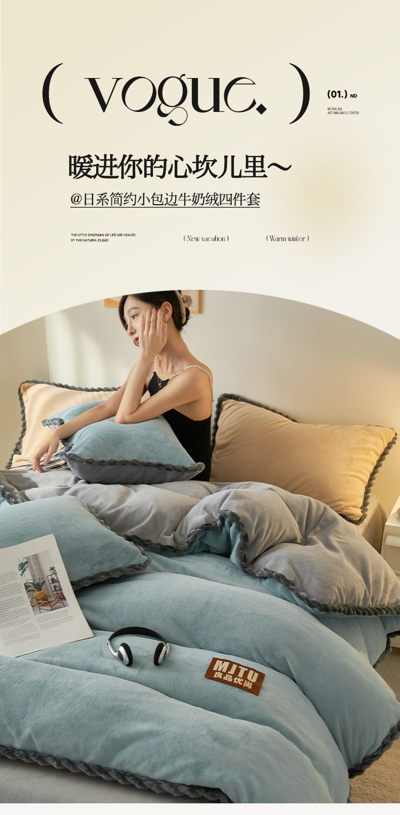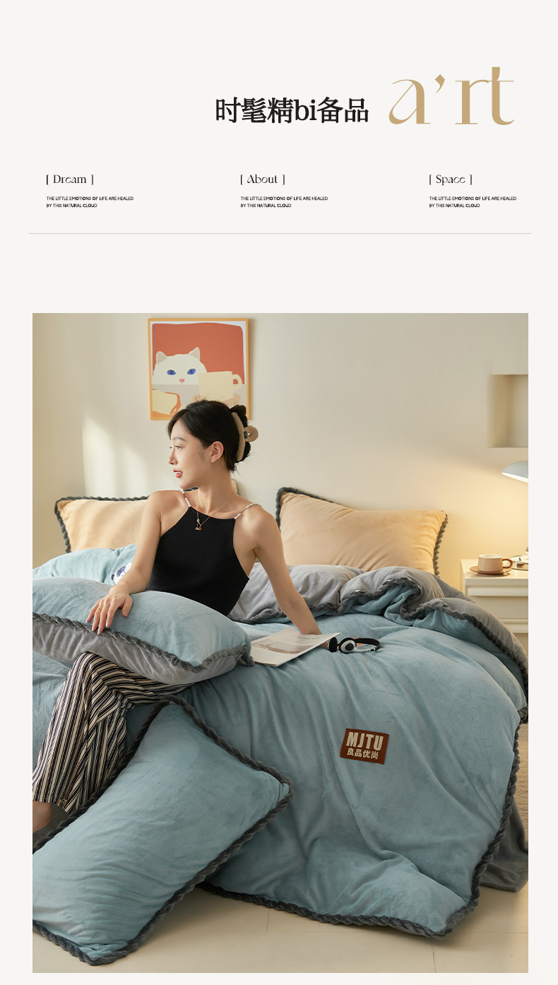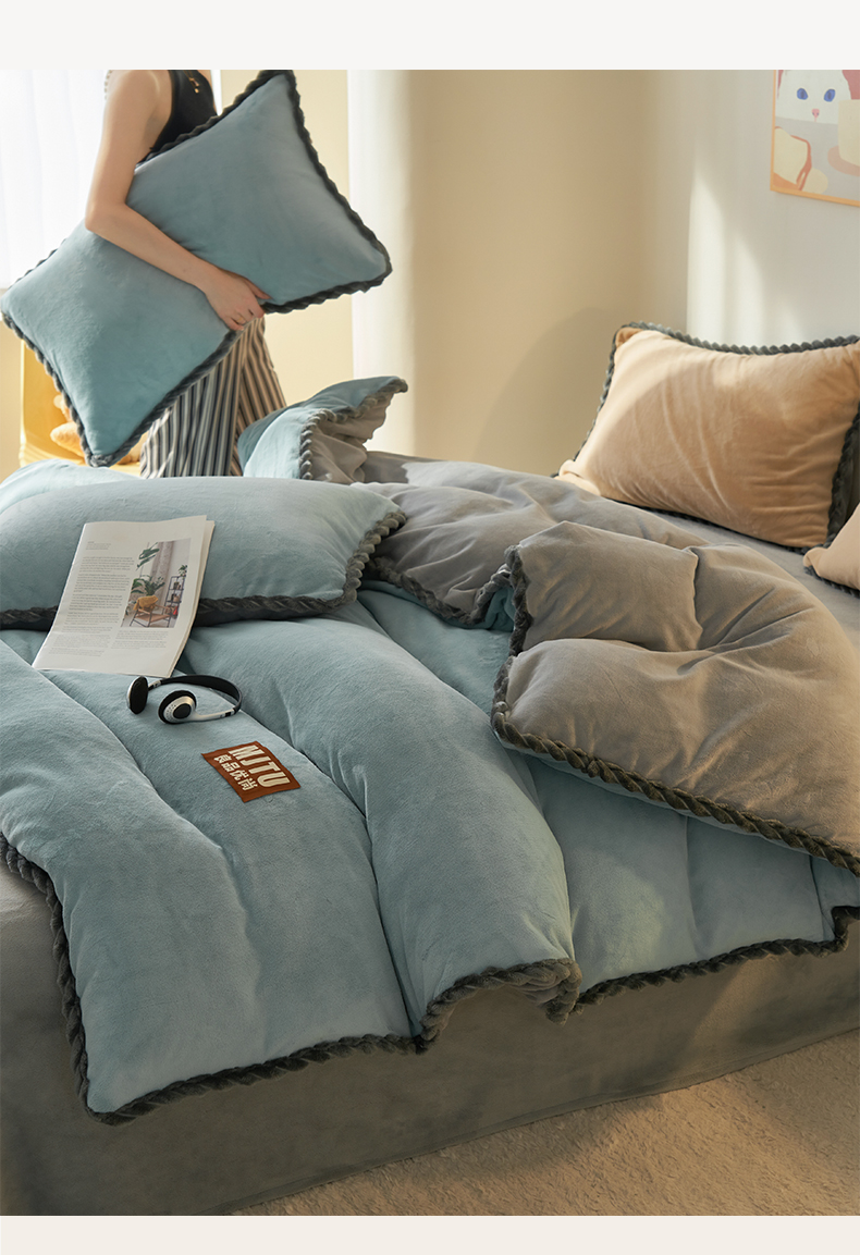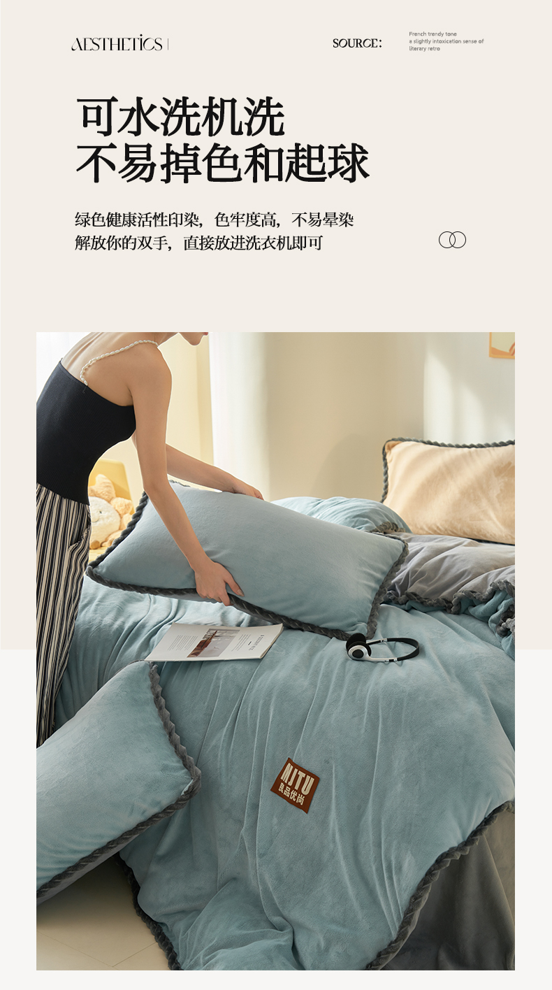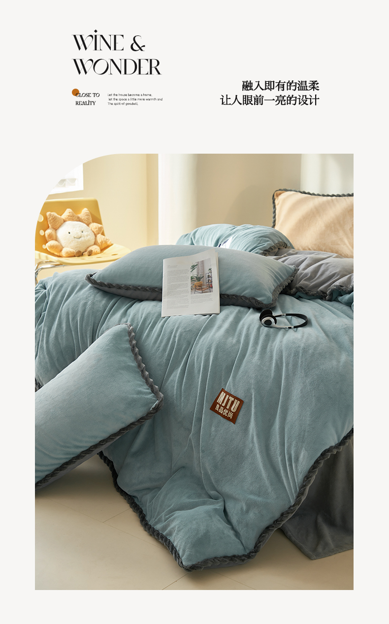 • 91家纺网 家纺一手货源 找家纺 晨曦家纺 2025新款加厚高克重230克日系简约小包边牛奶绒单被套 简约-宾利蓝灰