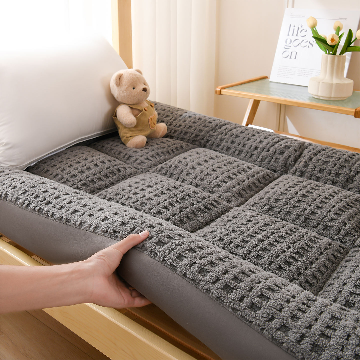 商品名称:小叮当家纺仓储工厂店 2025新款A类提花牛奶绒塔芙绒单床垫床垫单品跨境-方格 学生床 方格卡其