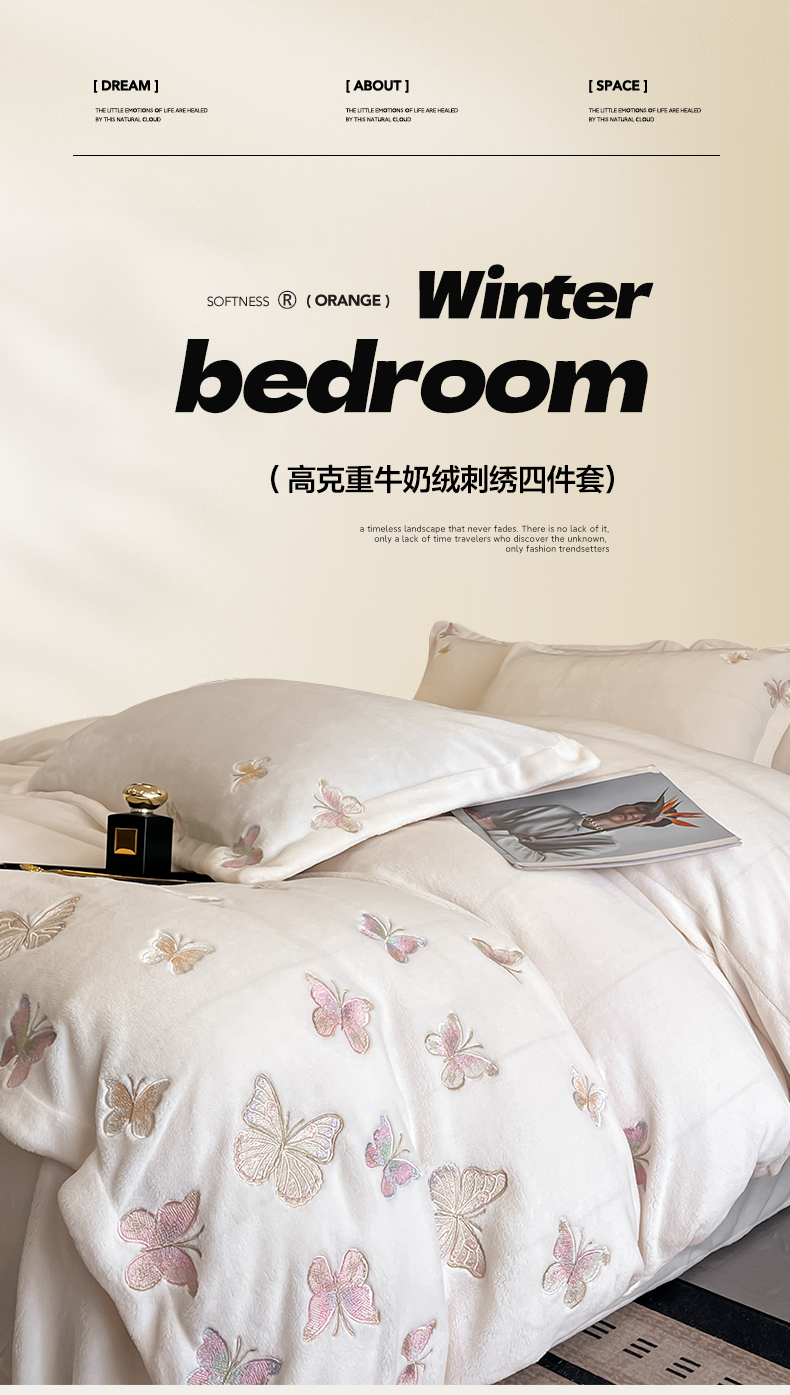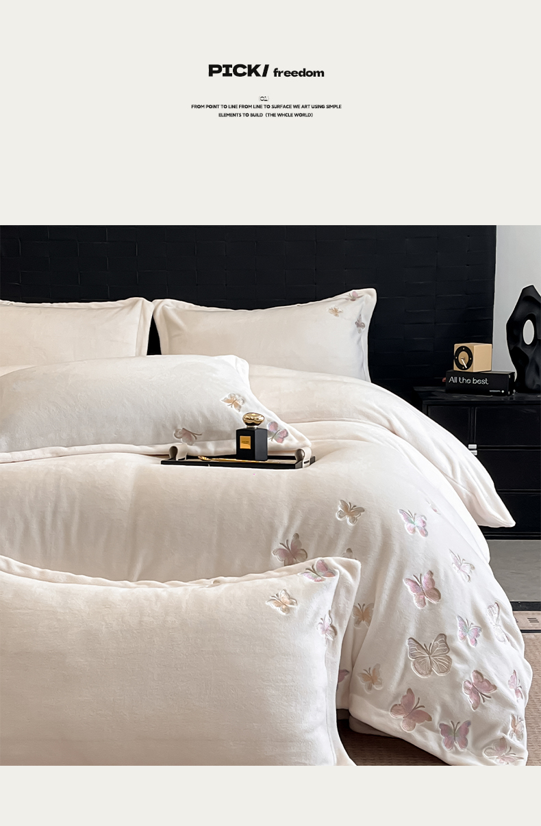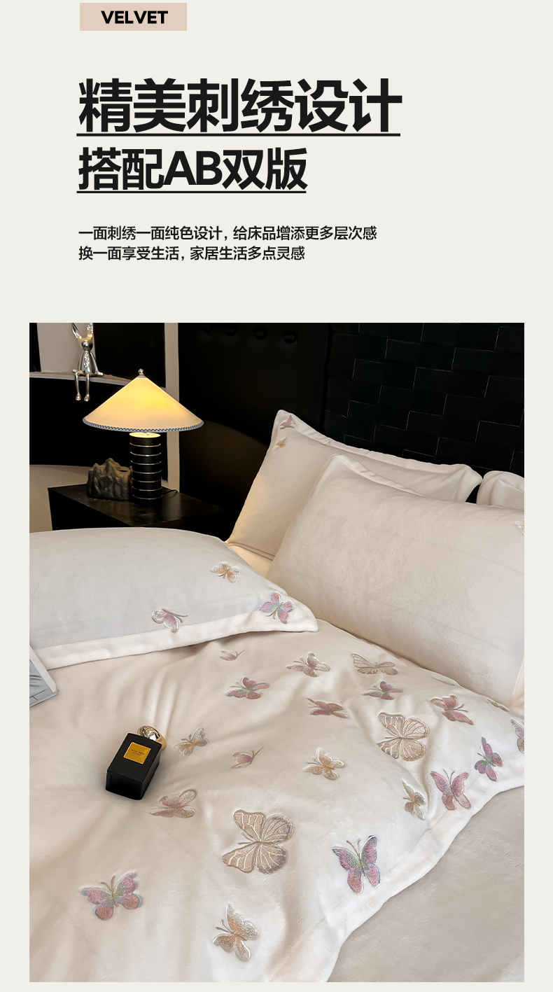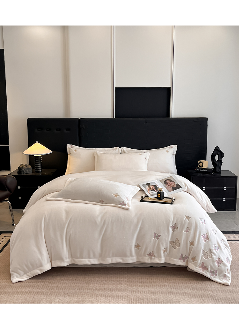 逸尚阁 2025新款高克重牛奶绒刺绣四件套-绒蝶恋系列 绒蝶恋-奶白