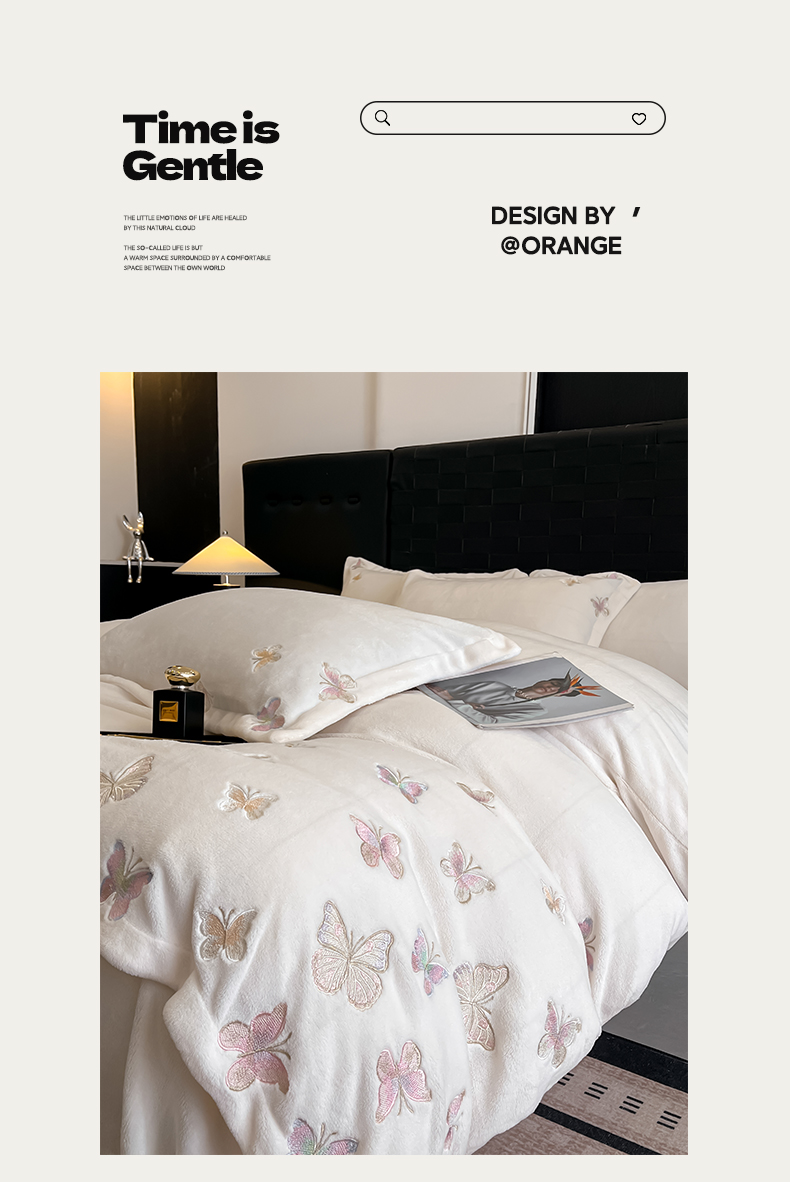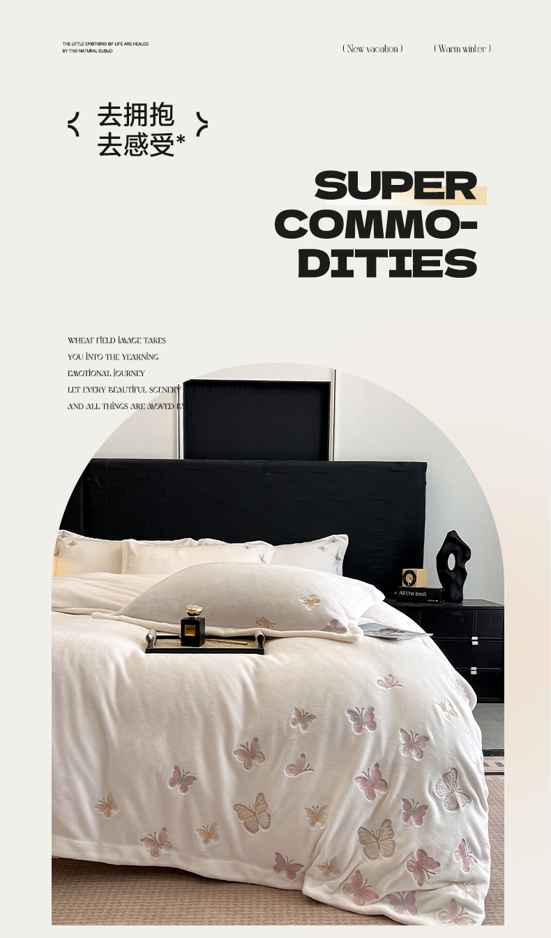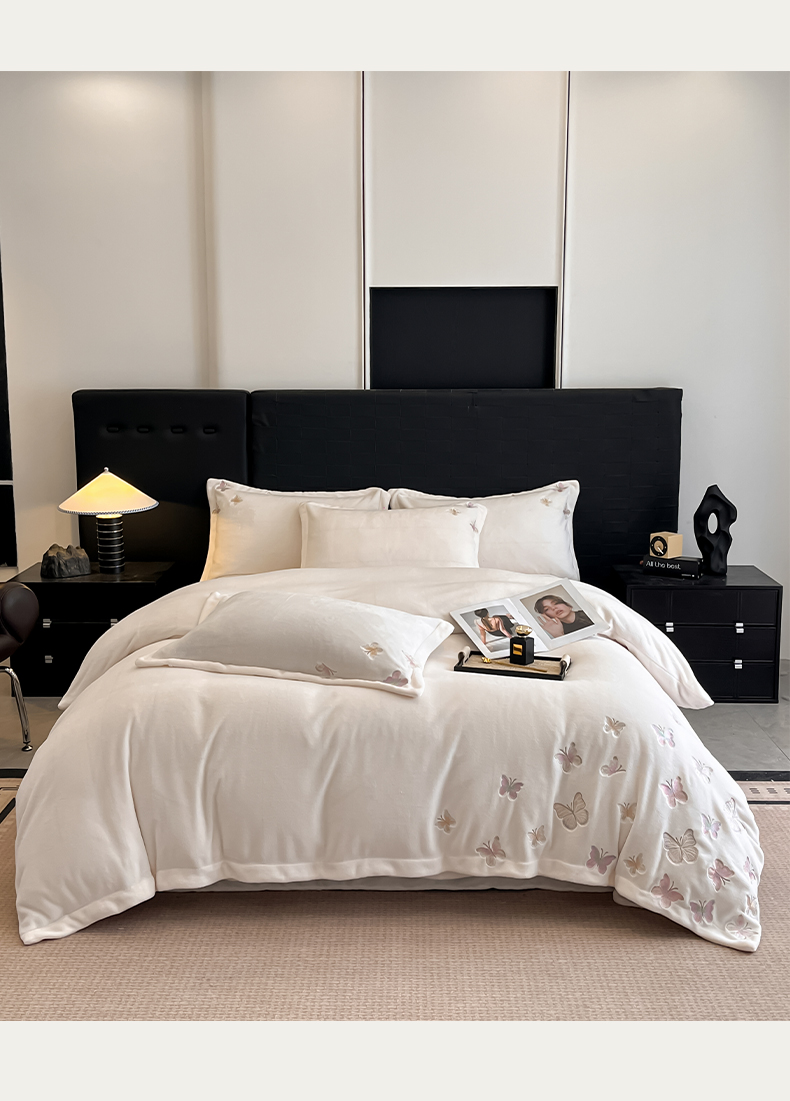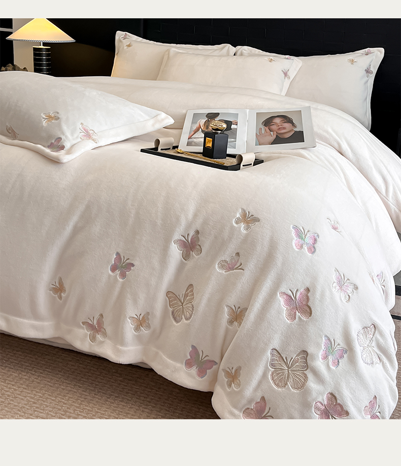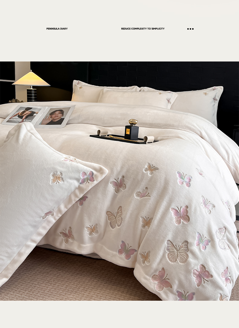逸尚阁 2025新款高克重牛奶绒刺绣四件套-绒蝶恋系列 绒蝶恋-奶白
