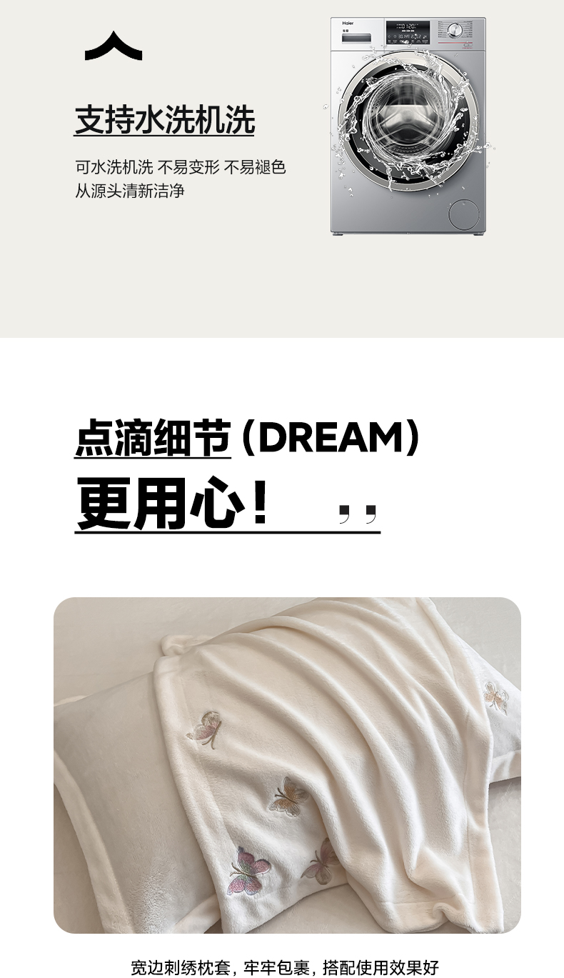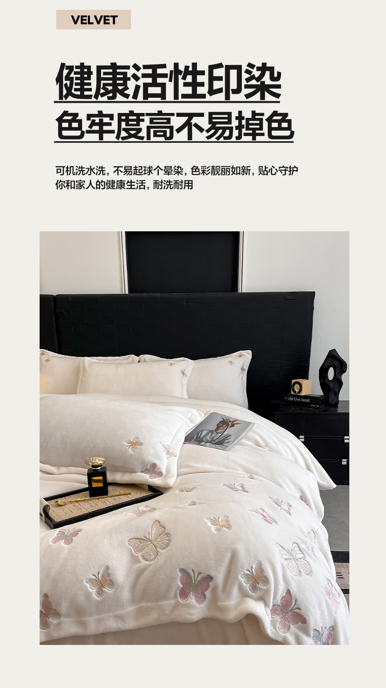 商品名称:逸尚阁 2025新款高克重牛奶绒刺绣四件套-绒蝶恋系列 绒蝶恋-奶白