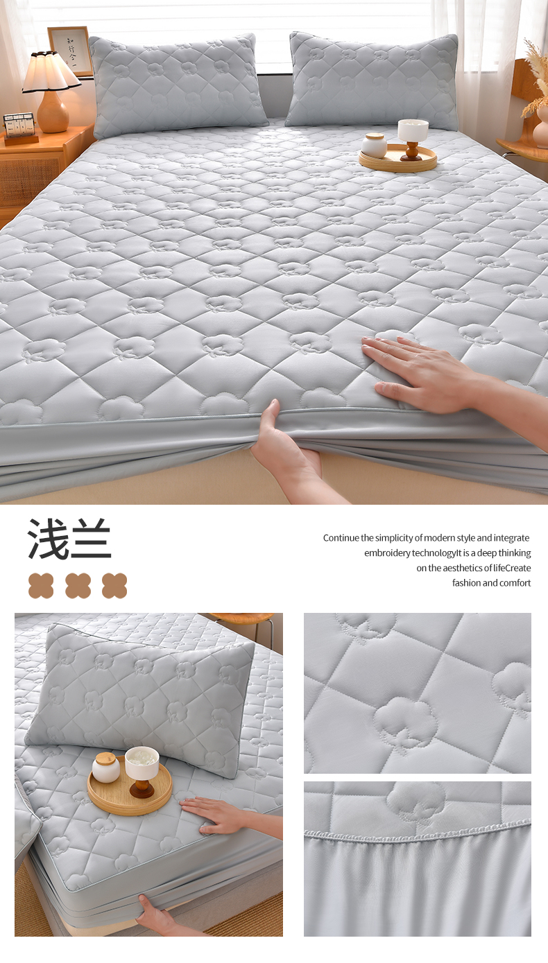 金鹰 2025新款全棉50S夹棉抗菌防螨床笠加厚床笠席梦思保护套 灰色