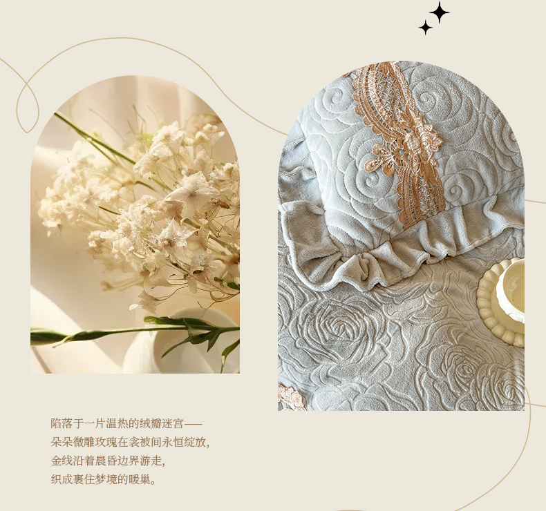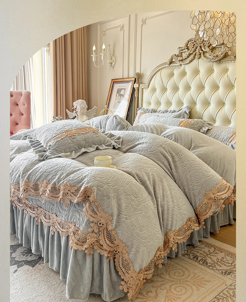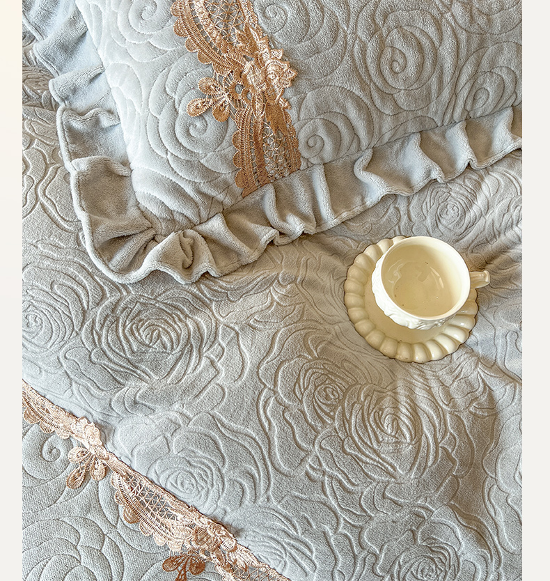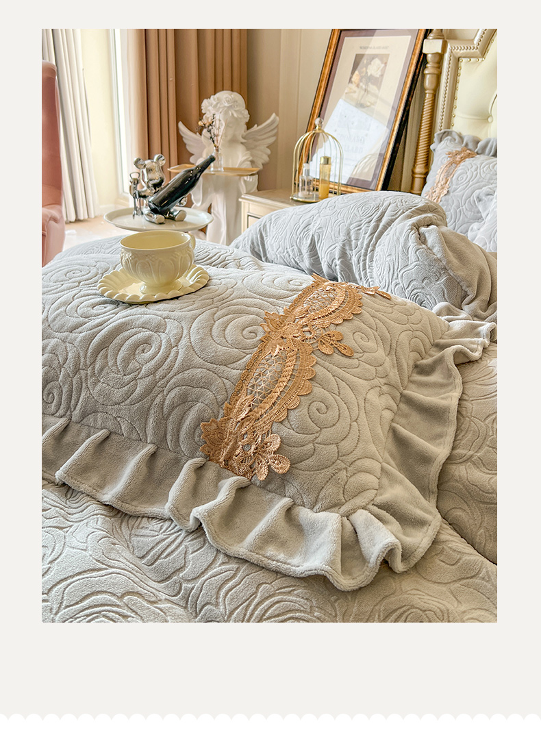 商品名称:恋尚 2025新款雕花牛奶绒罗曼蒂克系列四件套(控价290) 罗曼蒂克-椰蓉灰