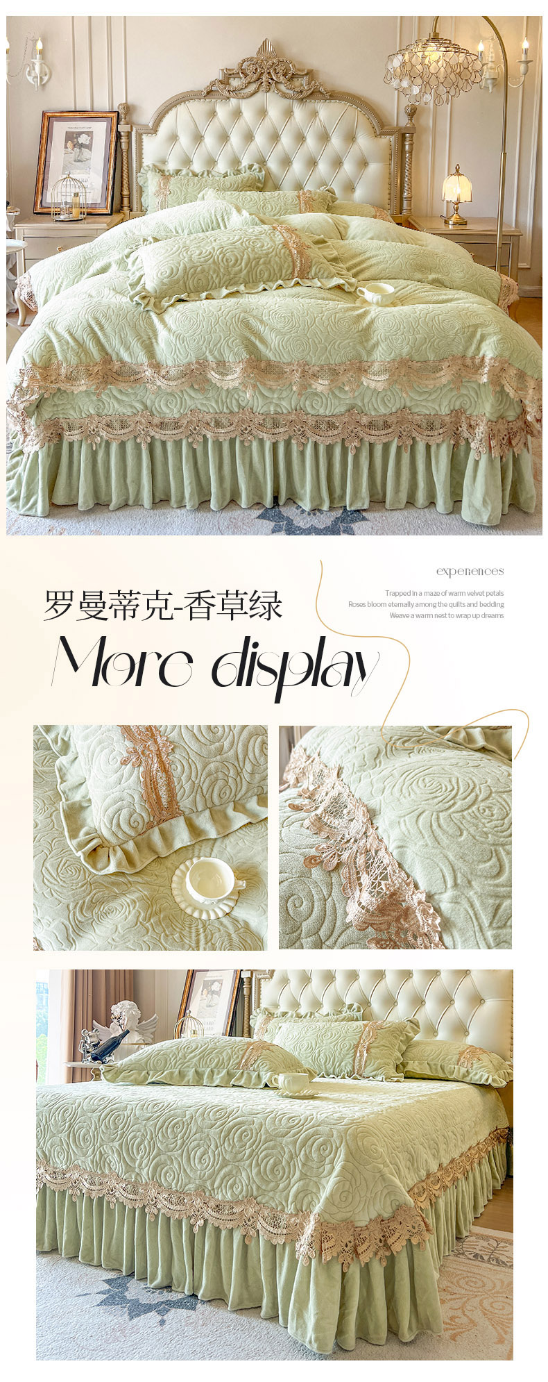(总)恋尚 2025新款柔软牛奶绒保暖蕾丝床裙四件套-玫瑰故事(控价305),玫瑰故事-蜜桃粉,玫瑰故事-奶茶色,玫瑰故事-椰蓉灰,玫瑰故事-香芋紫,玫瑰故事-清新粉,玫瑰故事-香草绿