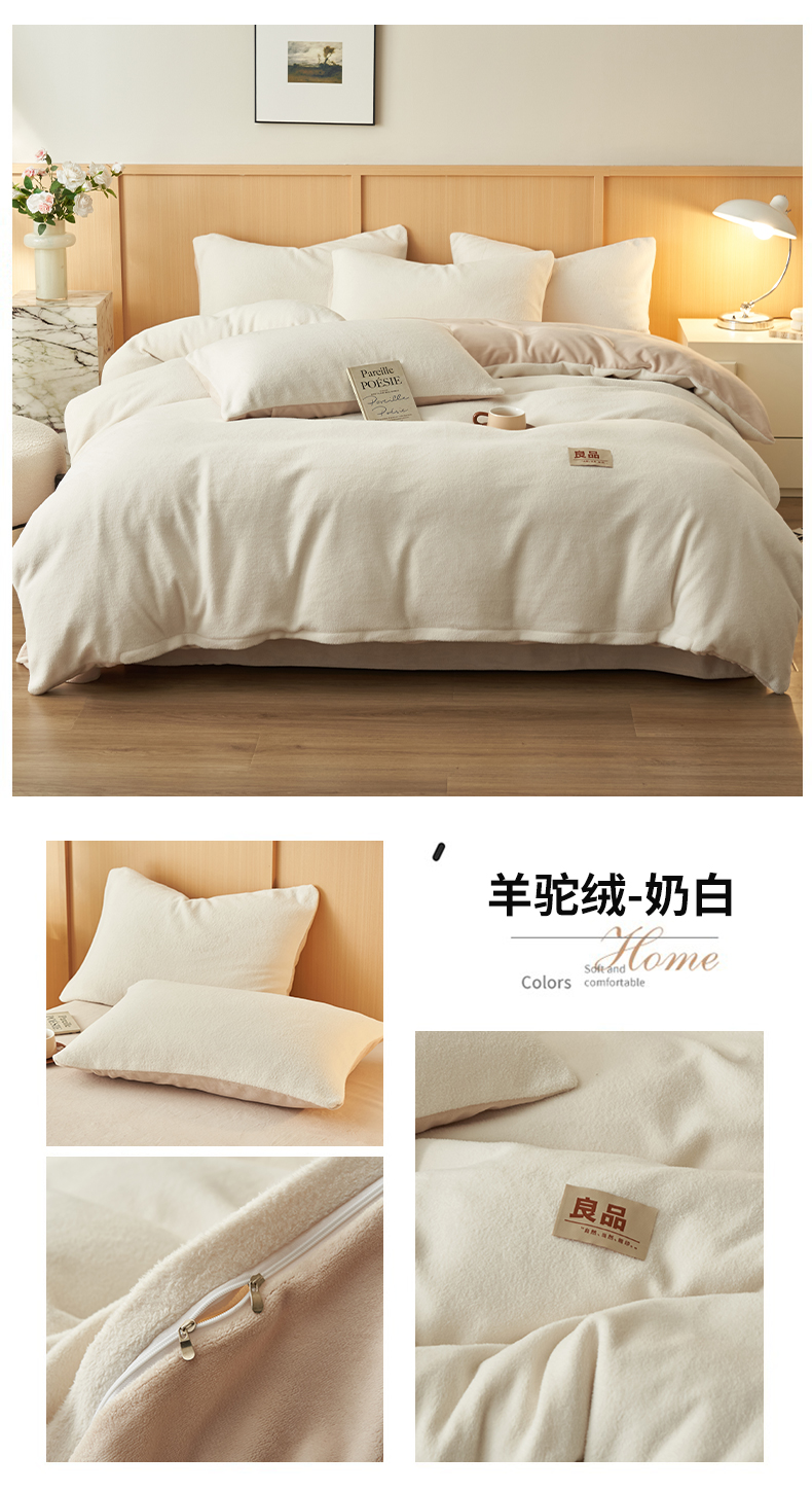 (总)金鹰 2025新款羊驼绒牛奶绒四件套加厚保暖绒套件被套,羊驼绒-浅灰,羊驼绒-深咖,羊驼绒-驼色,羊驼绒-粉色,羊驼绒-焦糖,羊驼绒-咖啡,羊驼绒-蓝色,羊驼绒-奶白