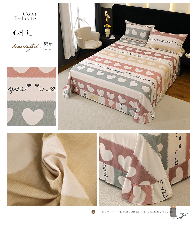 商品名称:贝兰仙奴 2025新款亲肤舒适全棉磨毛多规格系列单床单 心相近