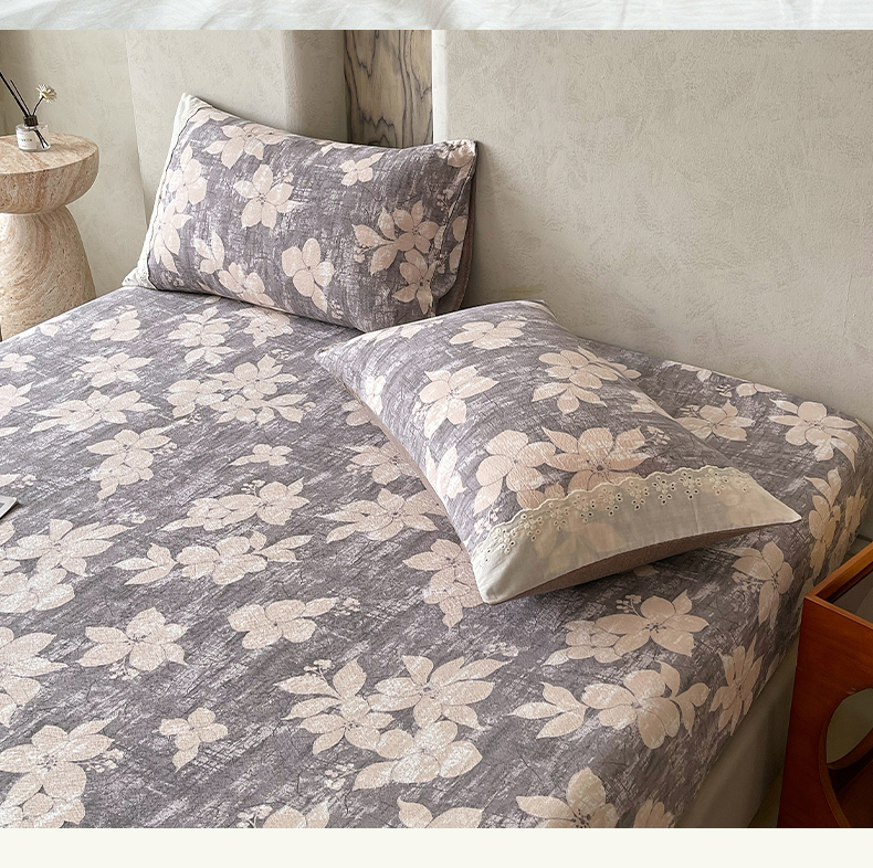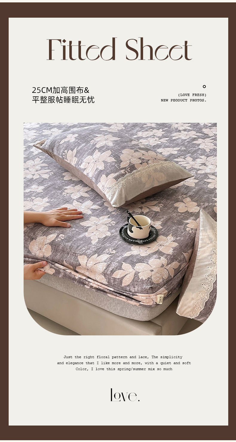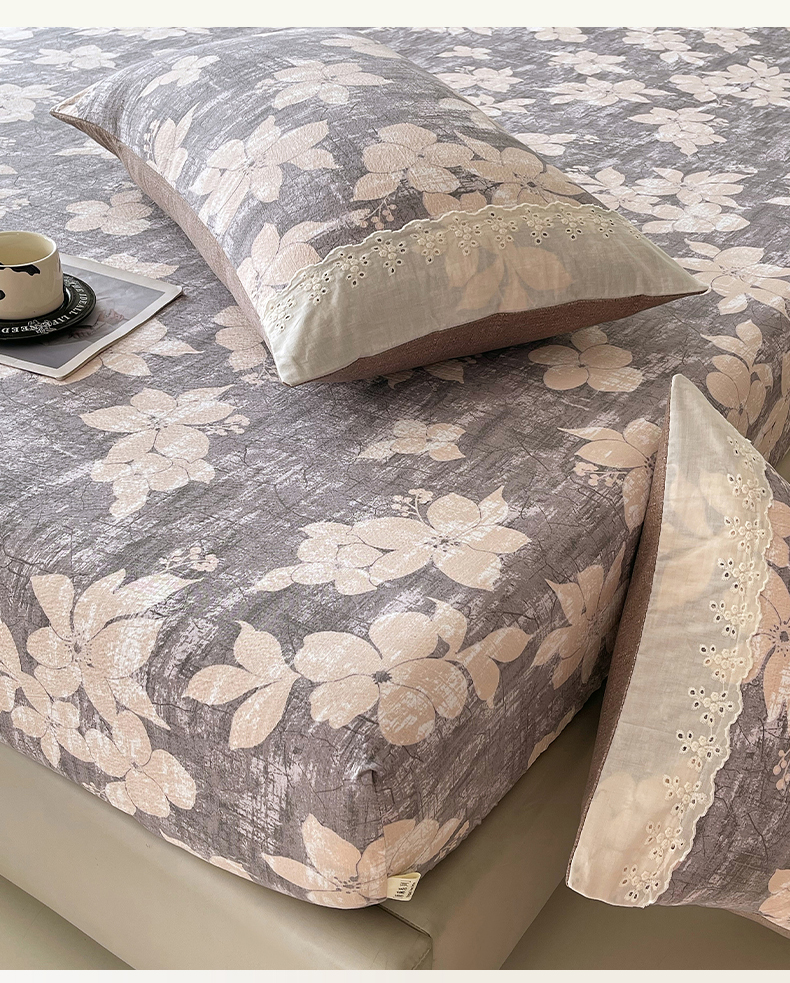 丝芙妮家居(原乐视家纺) 2025新款全棉纯棉蕾丝花边原麻单品床笠单件床笠 漫步花庭