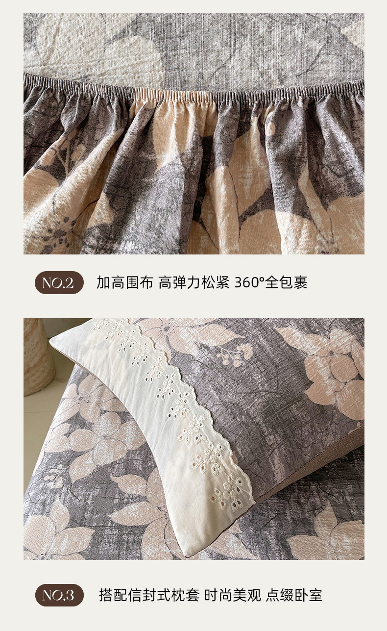 • 91家纺网 家纺一手货源 找家纺 丝芙妮家居(原乐视家纺) 2025新款全棉纯棉蕾丝花边原麻单品床笠单件床笠 漫步花庭