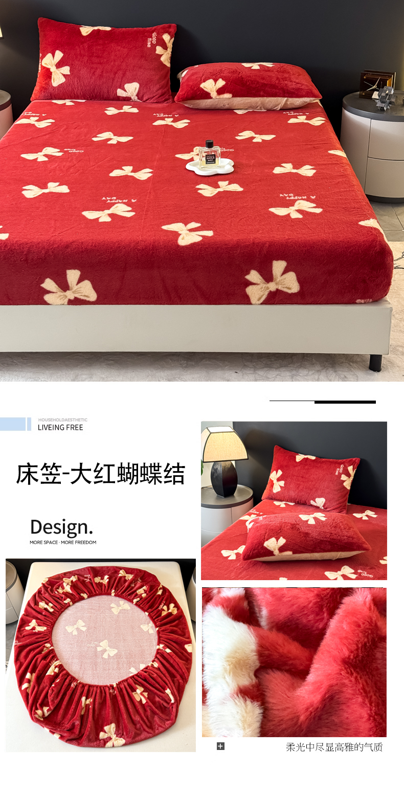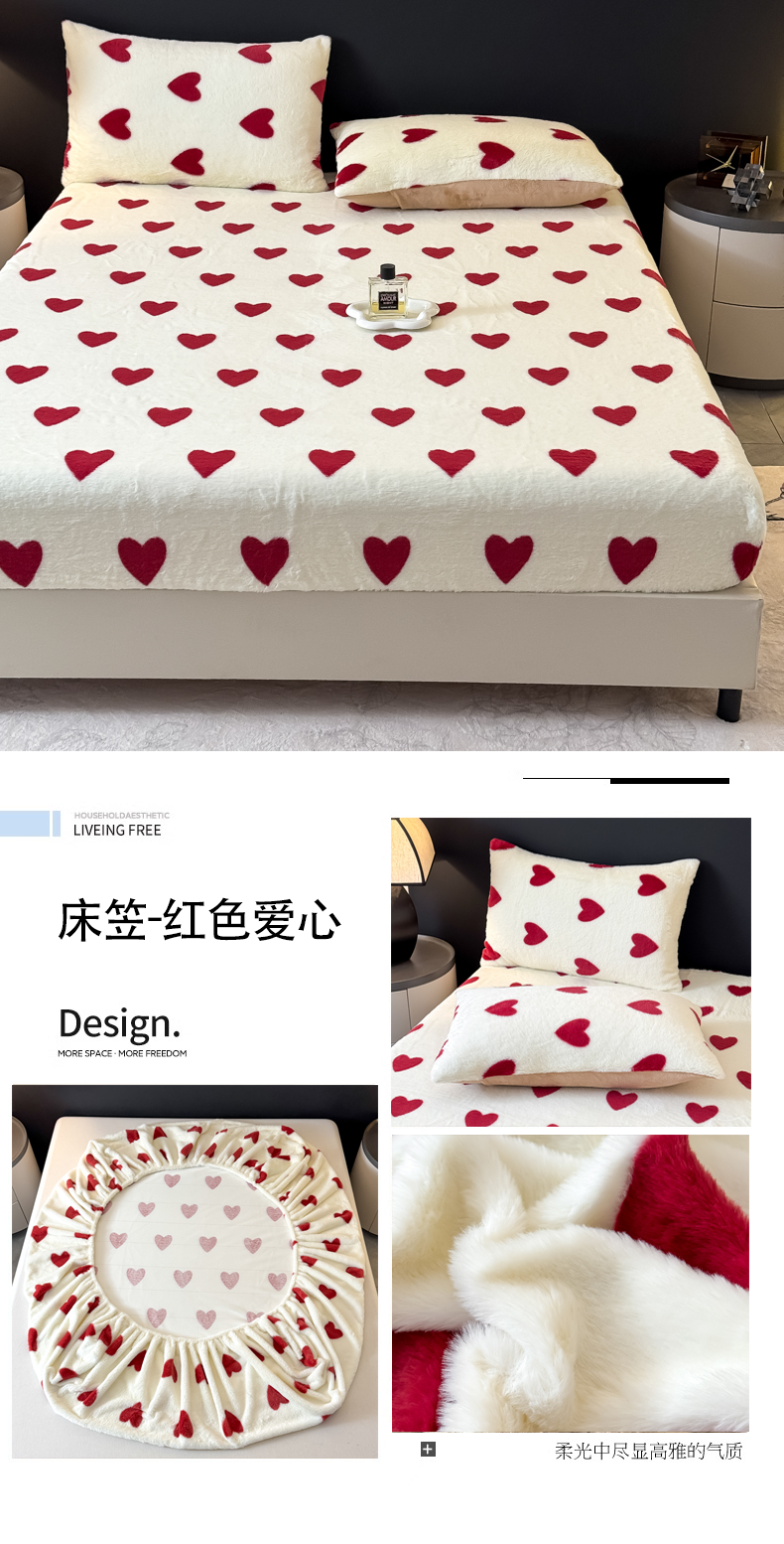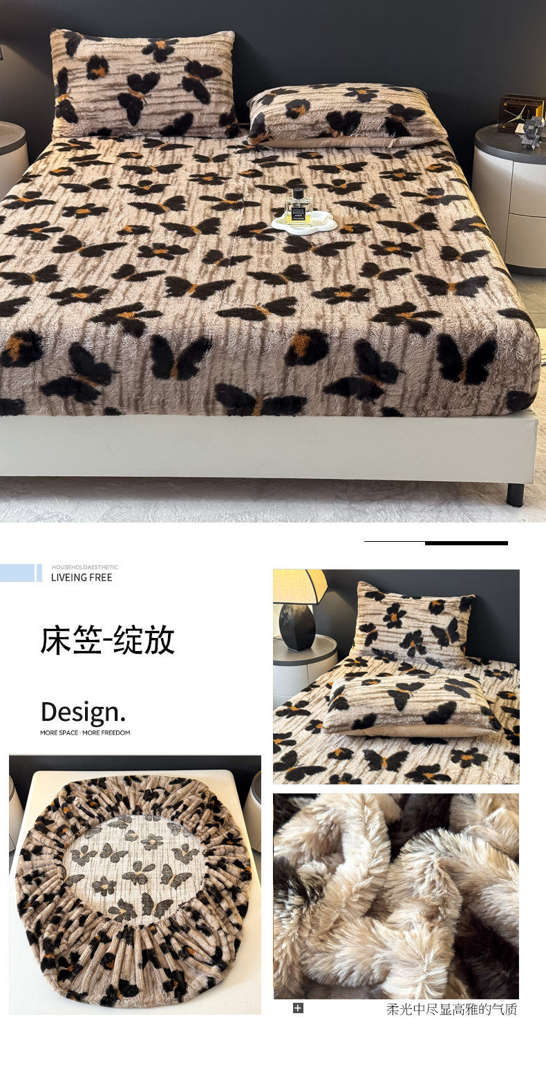 小叮当家纺仓储工厂店 2025新款印花兔毛绒高克重单床笠 床笠单件 床笠-花间粉