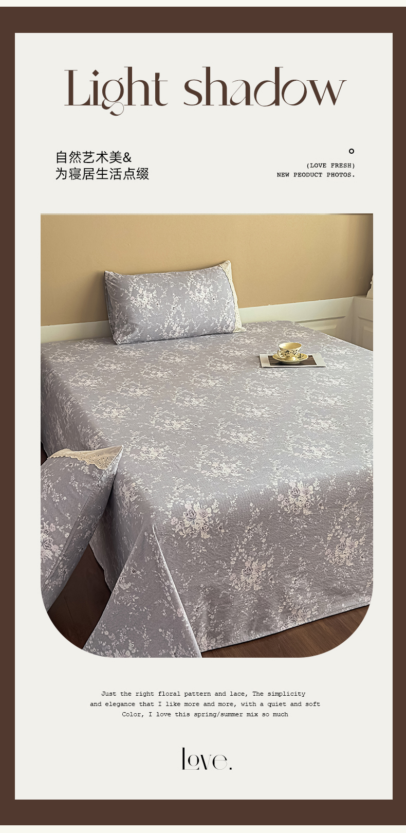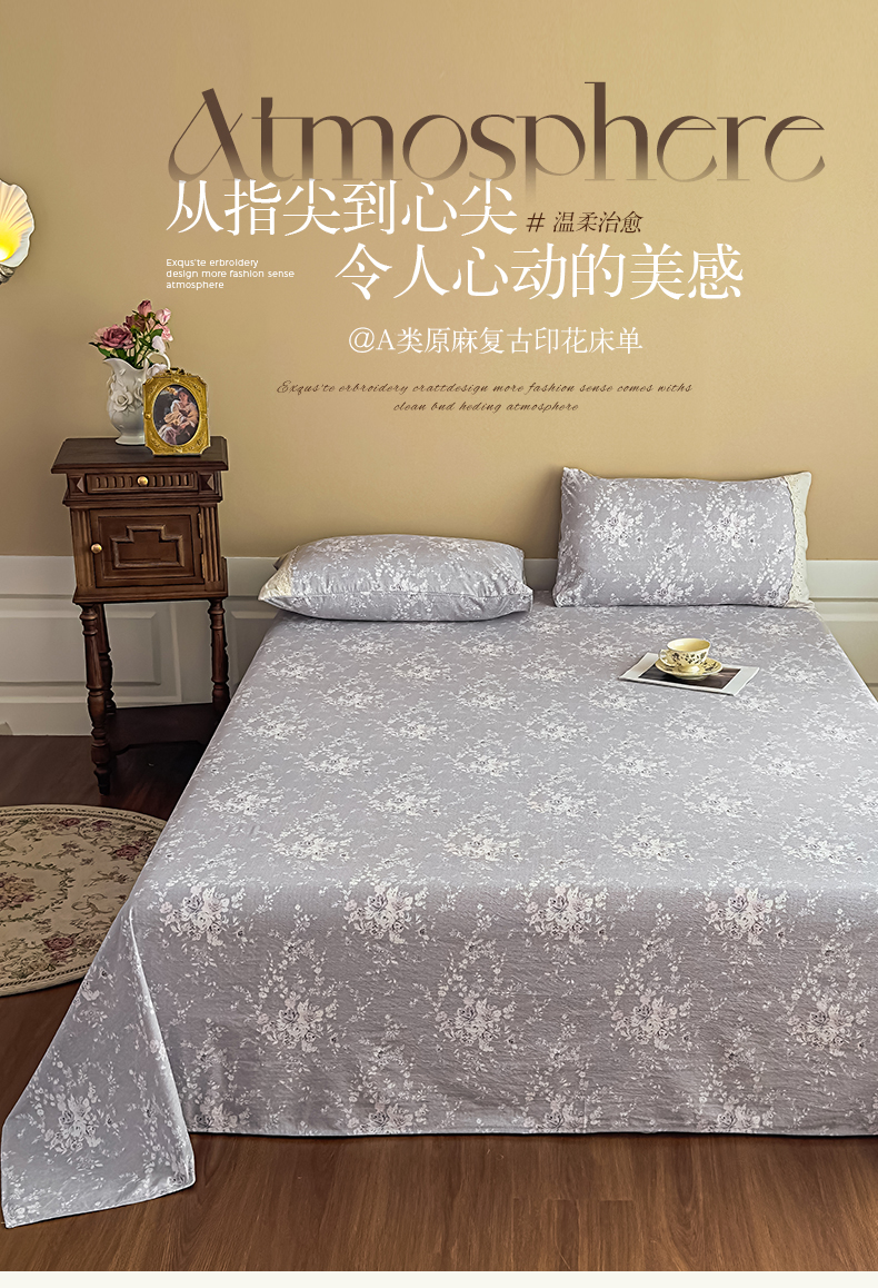 商品名称:丝芙妮家居(原乐视家纺) 2025新款全棉纯棉蕾丝花边原麻单件床单单品床单 花屿梦