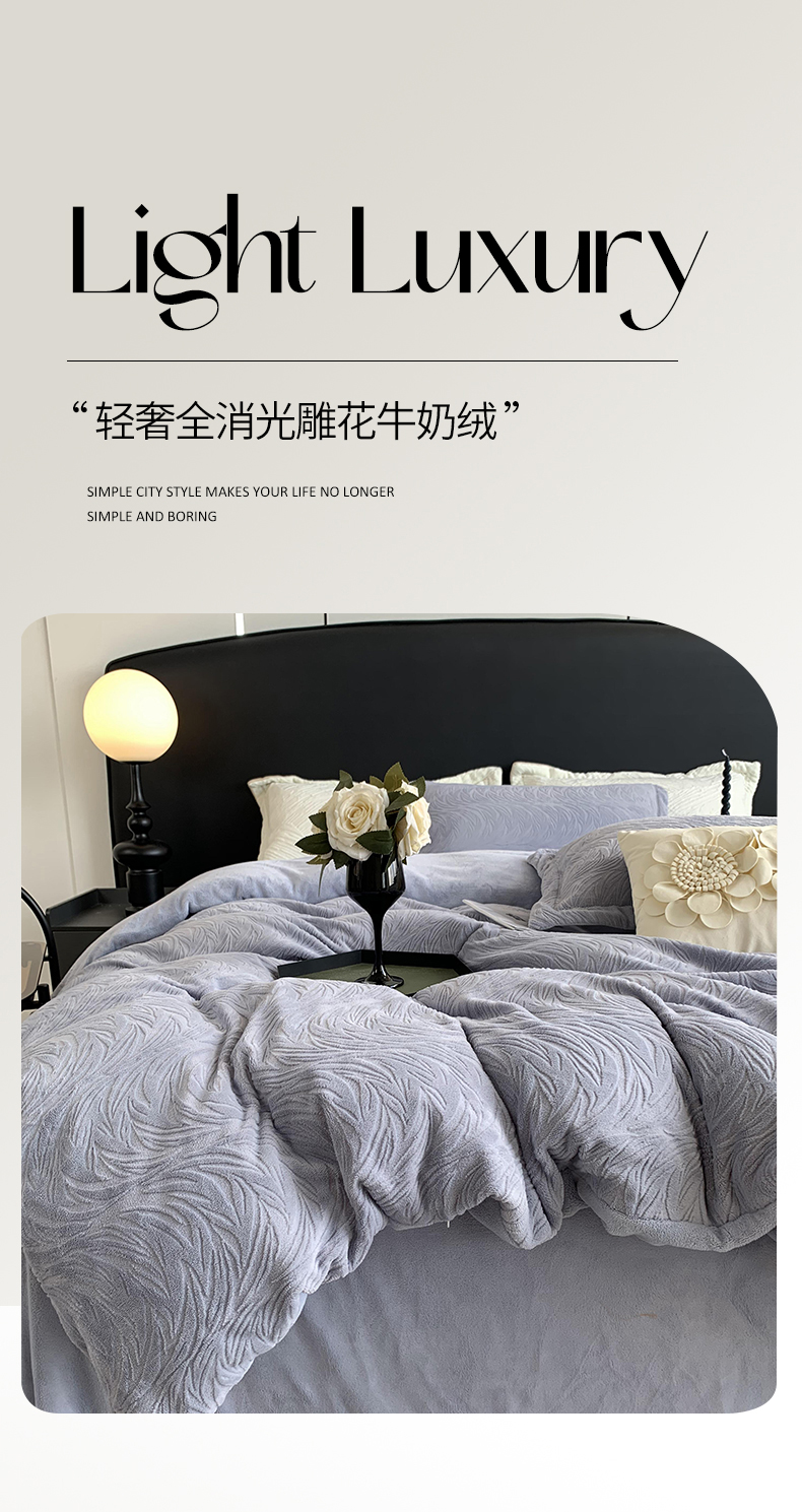 (总)奈萝家纺 2025新款雕花绒高克重牛奶绒四件套-流年系列,流年黛蓝灰,流年风信紫,流年卡其,流年木薯灰,流年肉桂粉,流年松露棕,流年心愿橙,流年烟熏灰,流年耀白,流年祖母绿,流年豆蔻绿,流年可可糖,流年暖阳,流年星蓝,流年胭脂红