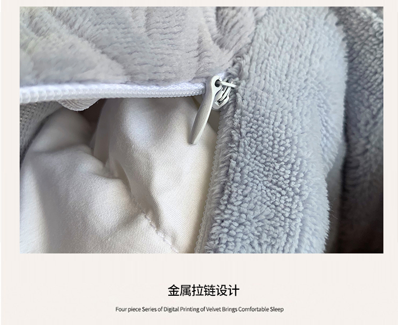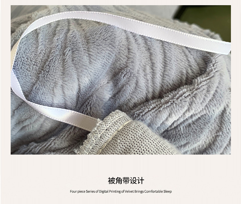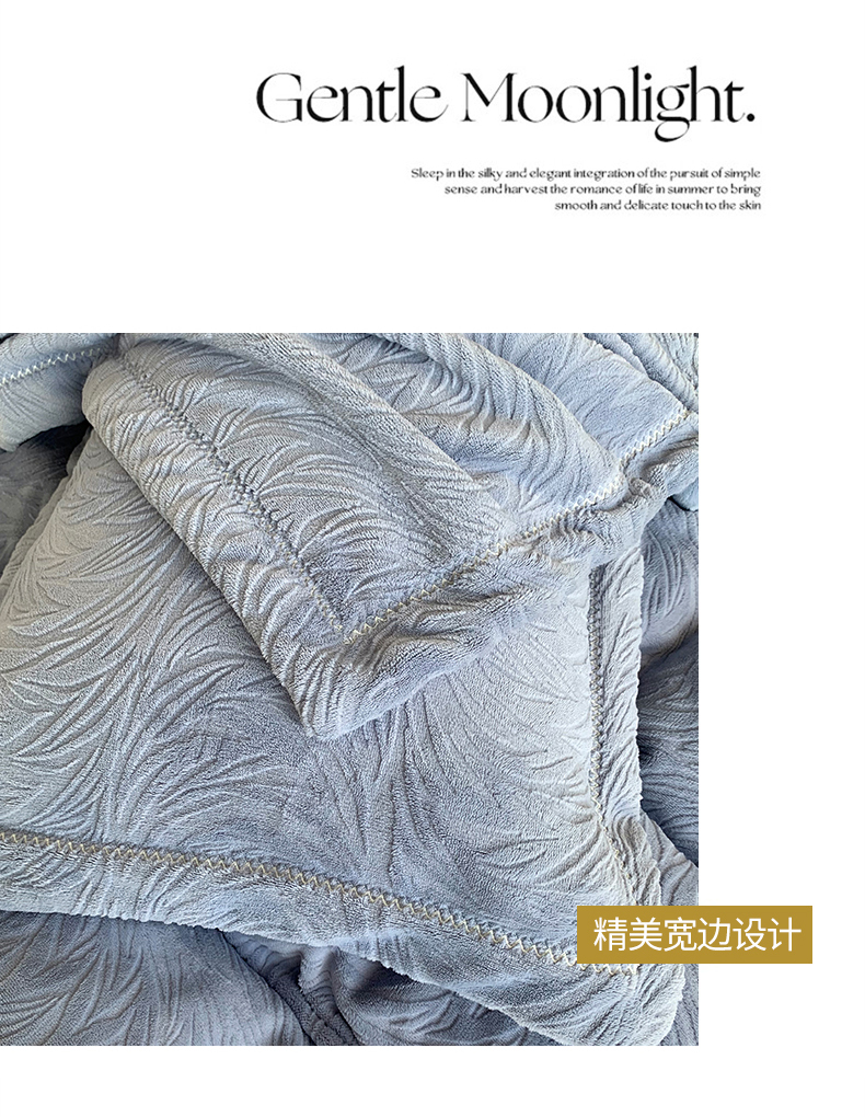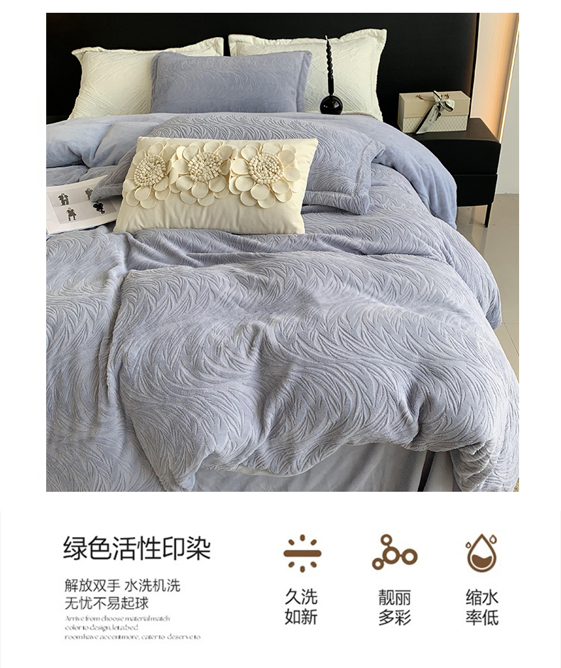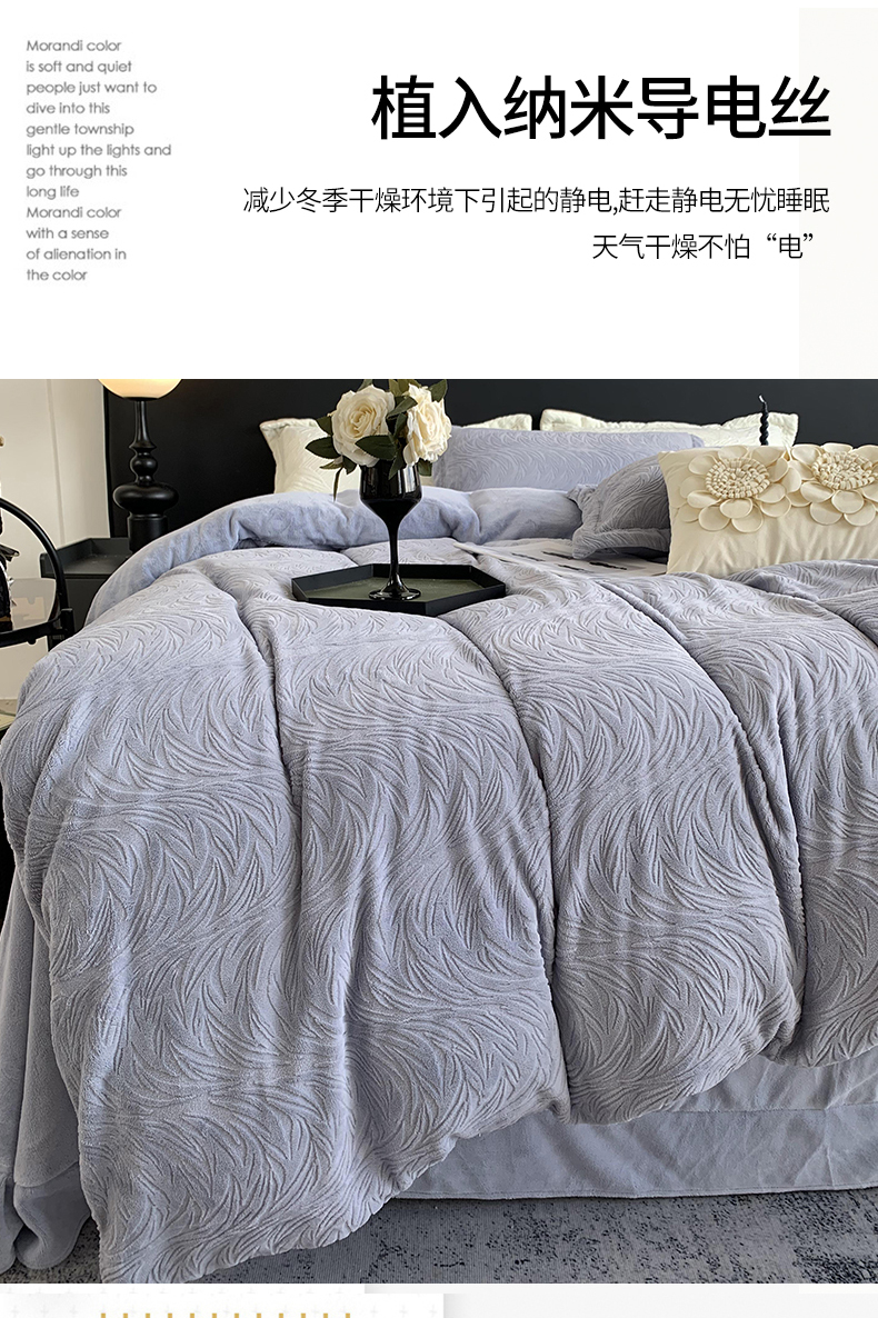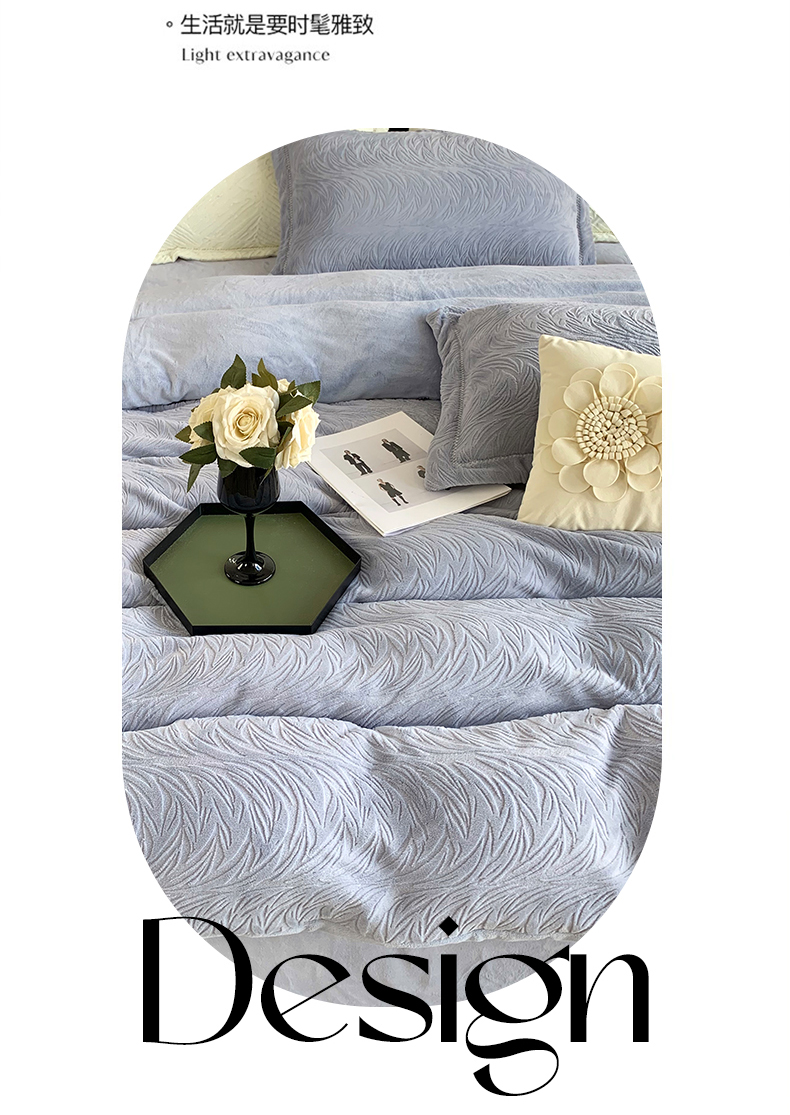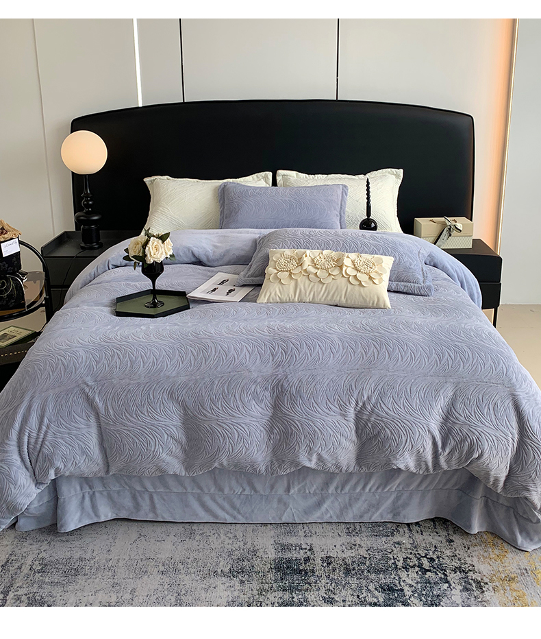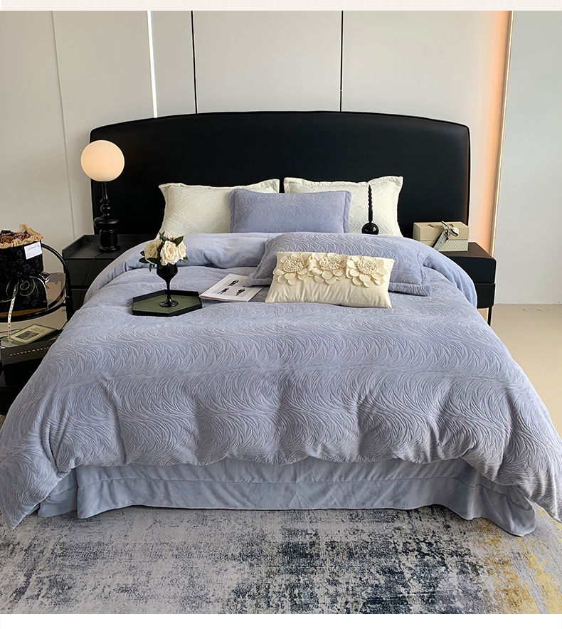 奈萝家纺 2025新款雕花绒高克重牛奶绒四件套-流年系列 流年黛蓝灰