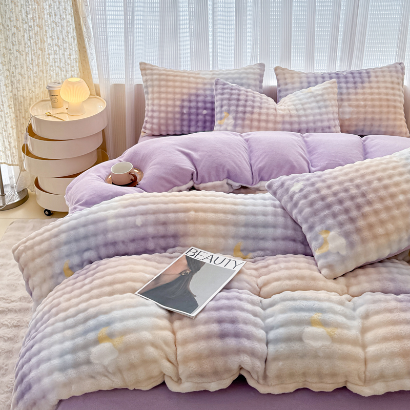 (总)(买家秀 爆款不断货)A类母婴级高克重獭兔绒四件套牛奶绒四件套牛奶绒四件套纯色韩版荷叶边兔毛绒四件套,泡泡粉玉,泡泡-滨海绿,泡泡-摩登卡,泡泡高级灰,泡泡卡其,泡泡奶白