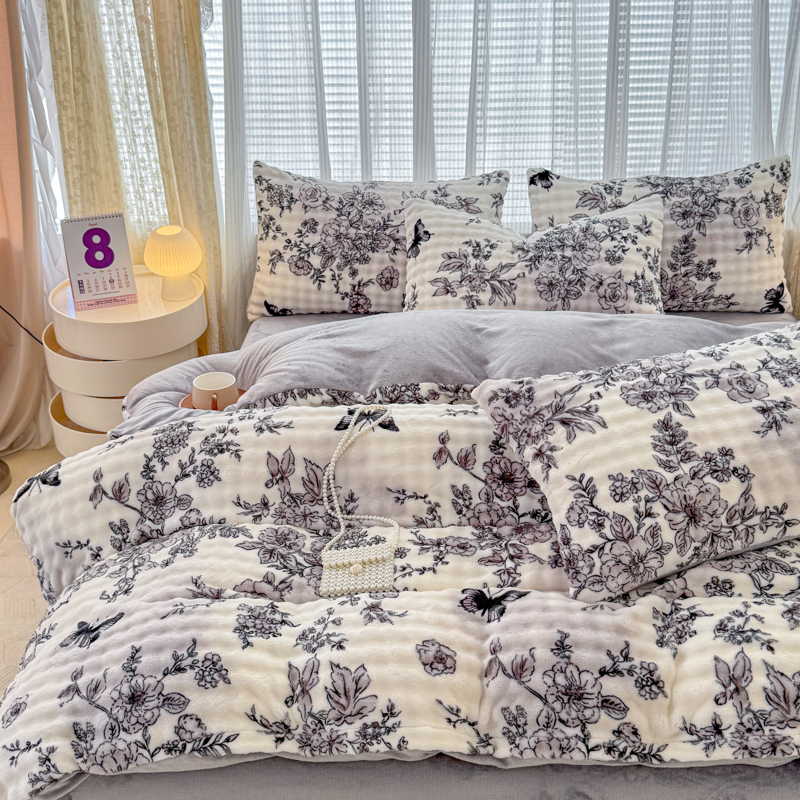 (总)小叮当家纺仓储工厂店 2025新款水晶绒夹棉床裙四件套,宝石兰,藏青,豆沙,粉玉,灰,酒红,墨绿,月光蓝