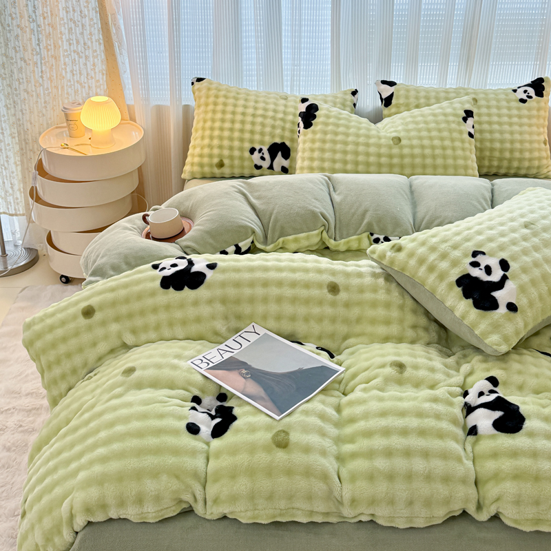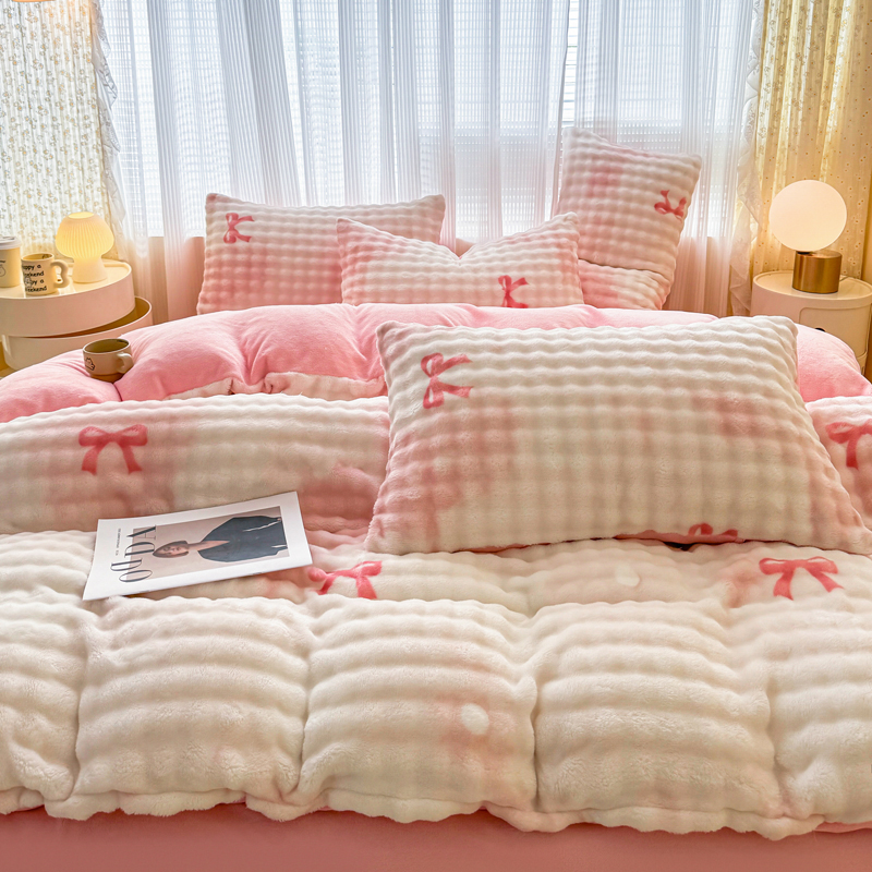 (总)(买家秀 爆款不断货)A类母婴级高克重獭兔绒四件套牛奶绒四件套牛奶绒四件套纯色韩版荷叶边兔毛绒四件套,泡泡粉玉,泡泡-滨海绿,泡泡-摩登卡,泡泡高级灰,泡泡卡其,泡泡奶白