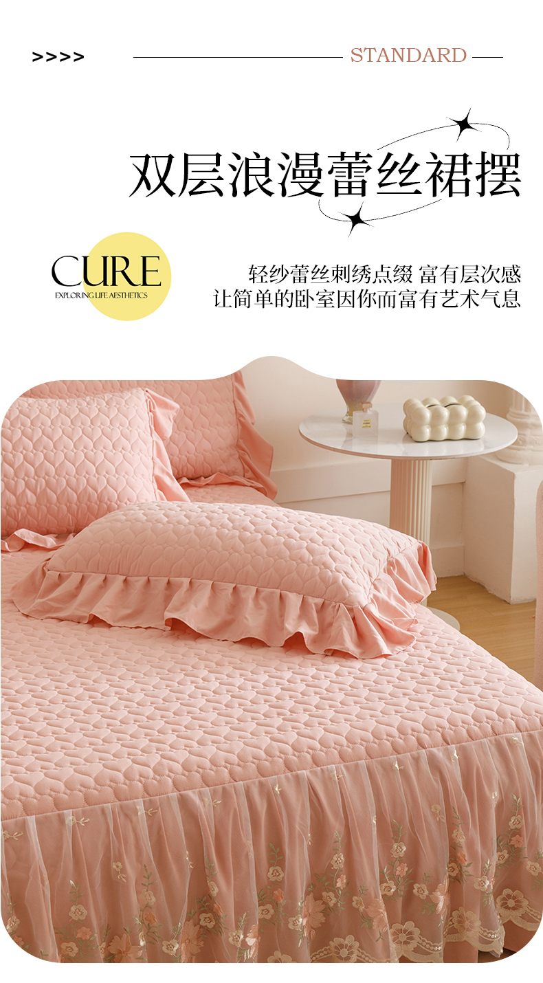 (总)好儿喜家纺 2024新款伊芙琳凉席床裙三件套,浅绿,橄榄绿,奶白,浅粉,浅蓝