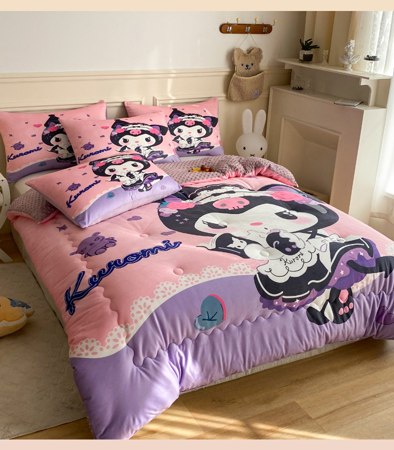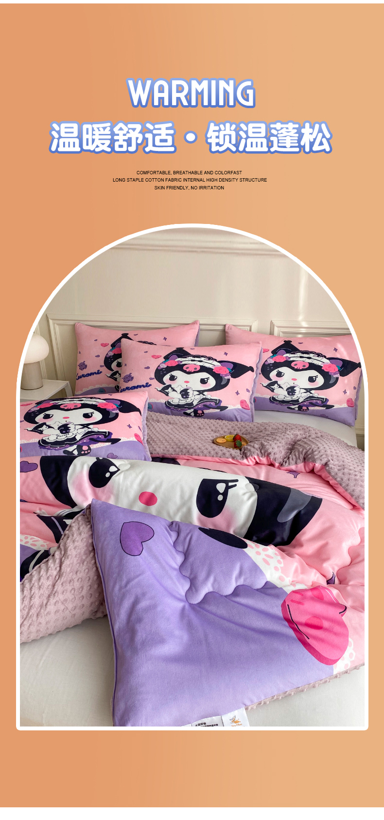 (总)一电 2025新款冬季双面牛奶珊瑚绒床上四件套法兰绒床品加绒被套床单三件套-第三批,公主库洛米,天使库洛米,甜筒库洛米,小兔子,圆点库洛米