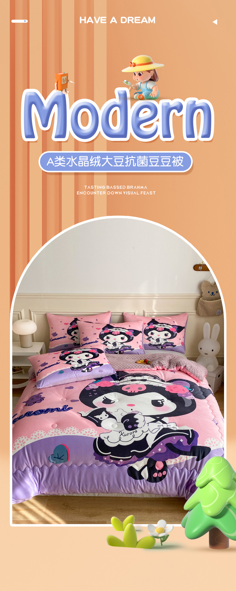 • 91家纺网 家纺一手货源 找家纺 (总)一电 2025新款双面牛奶绒被套单件150x200儿童加厚法兰珊瑚绒被罩200x230冬季-第三批,公主库洛米,天使库洛米,甜筒库洛米,小兔子,圆点库洛米