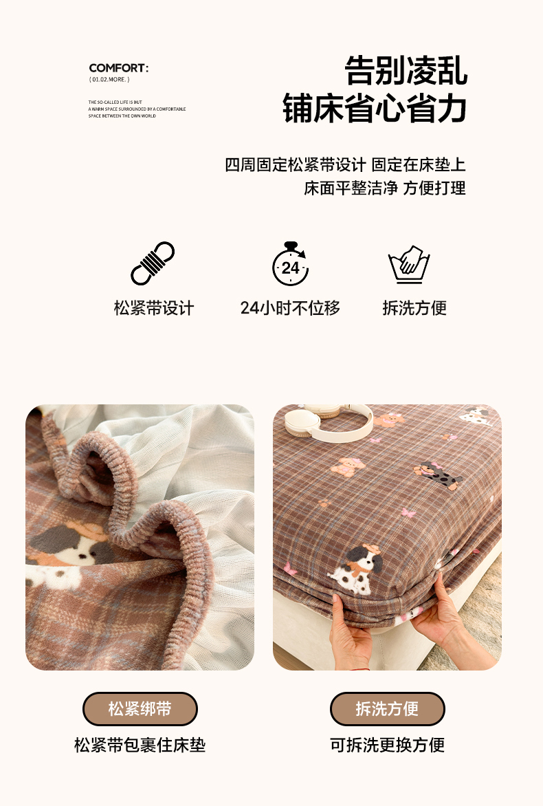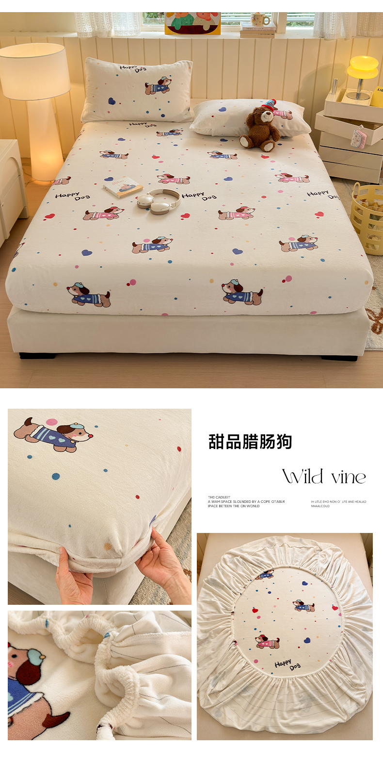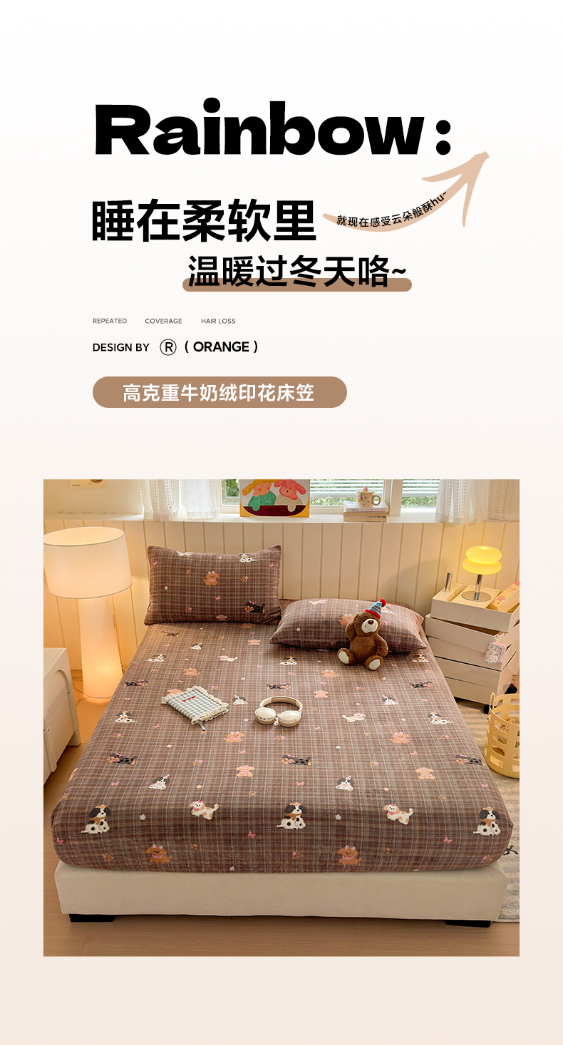 • 91家纺网 家纺一手货源 找家纺 丽美人家纺 2025年牛奶绒小版印花床笠单床笠床笠单件 英伦小狗