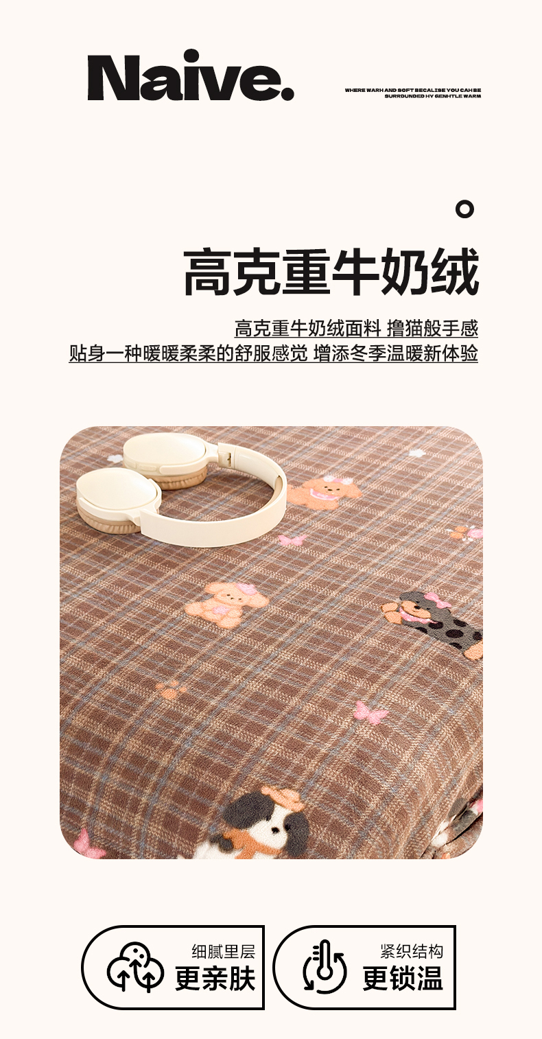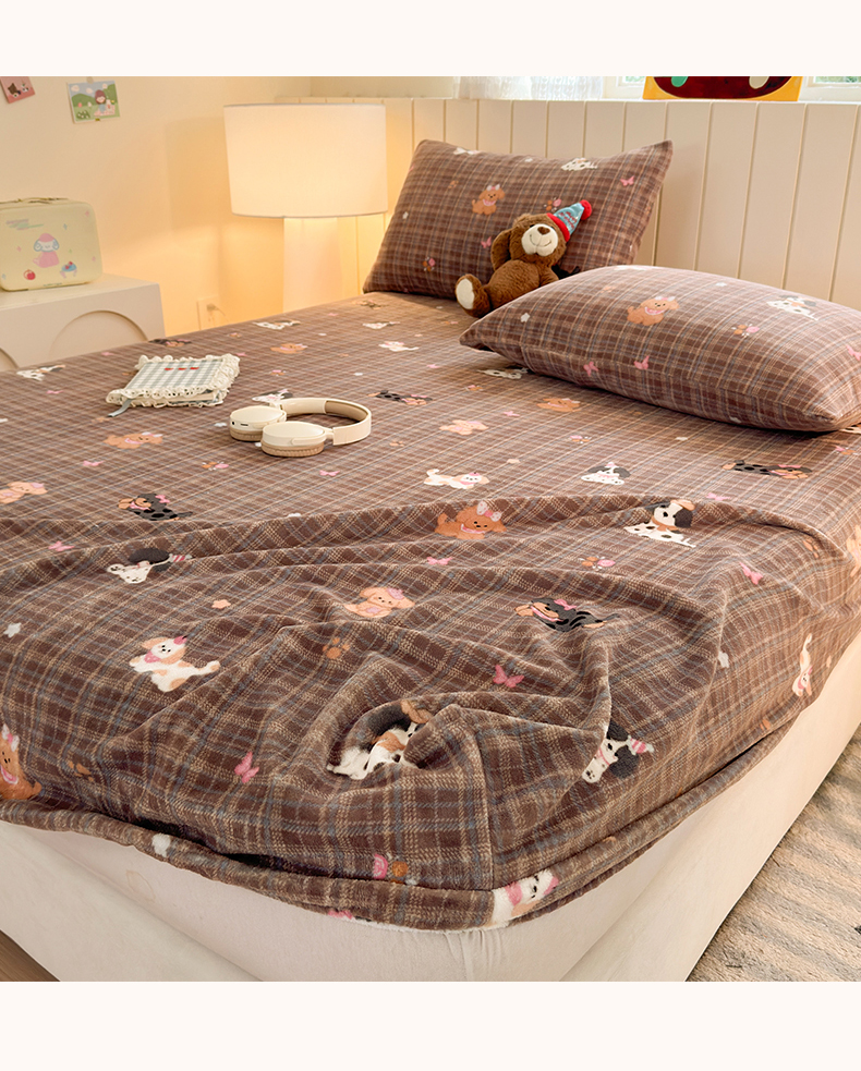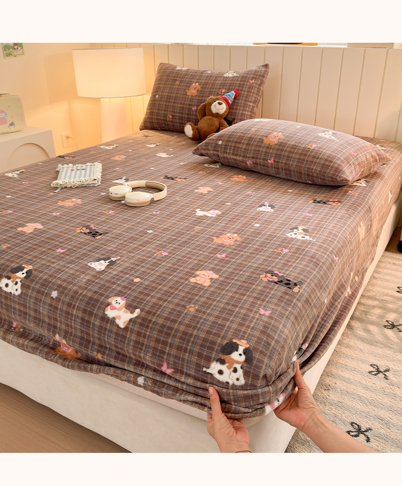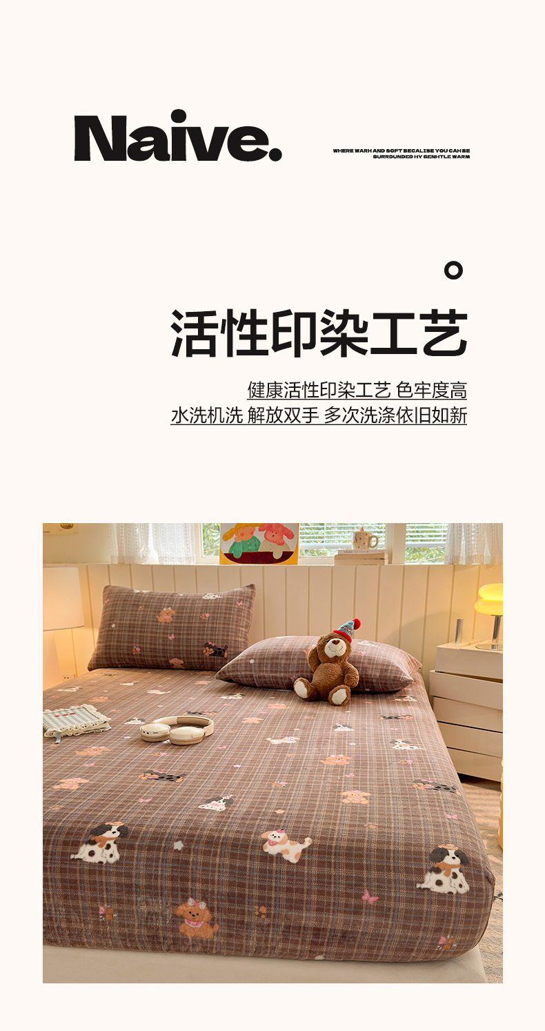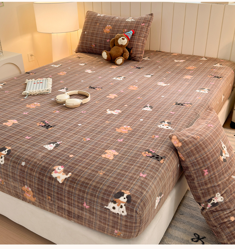 丽美人家纺 2025年牛奶绒小版印花床笠单床笠床笠单件 英伦小狗