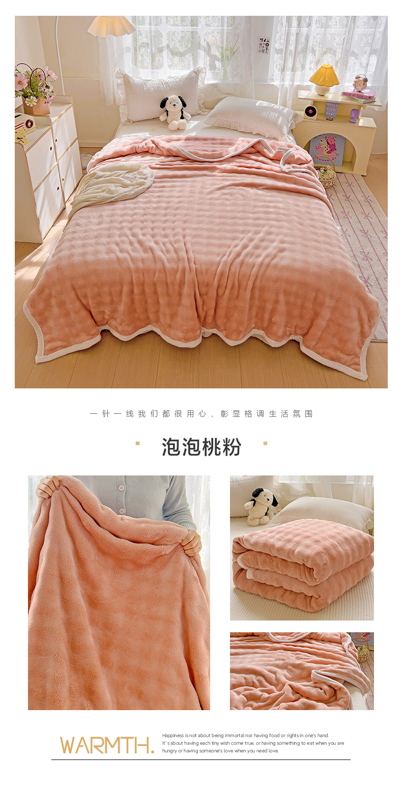 商品名称:启发 2025新款泡泡牛奶绒毛毯 泡泡桃粉