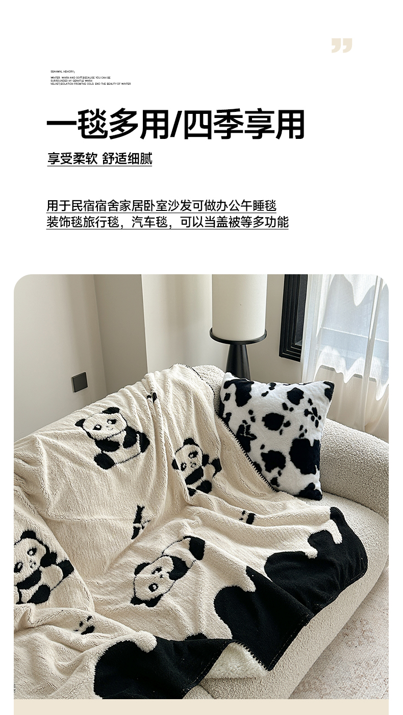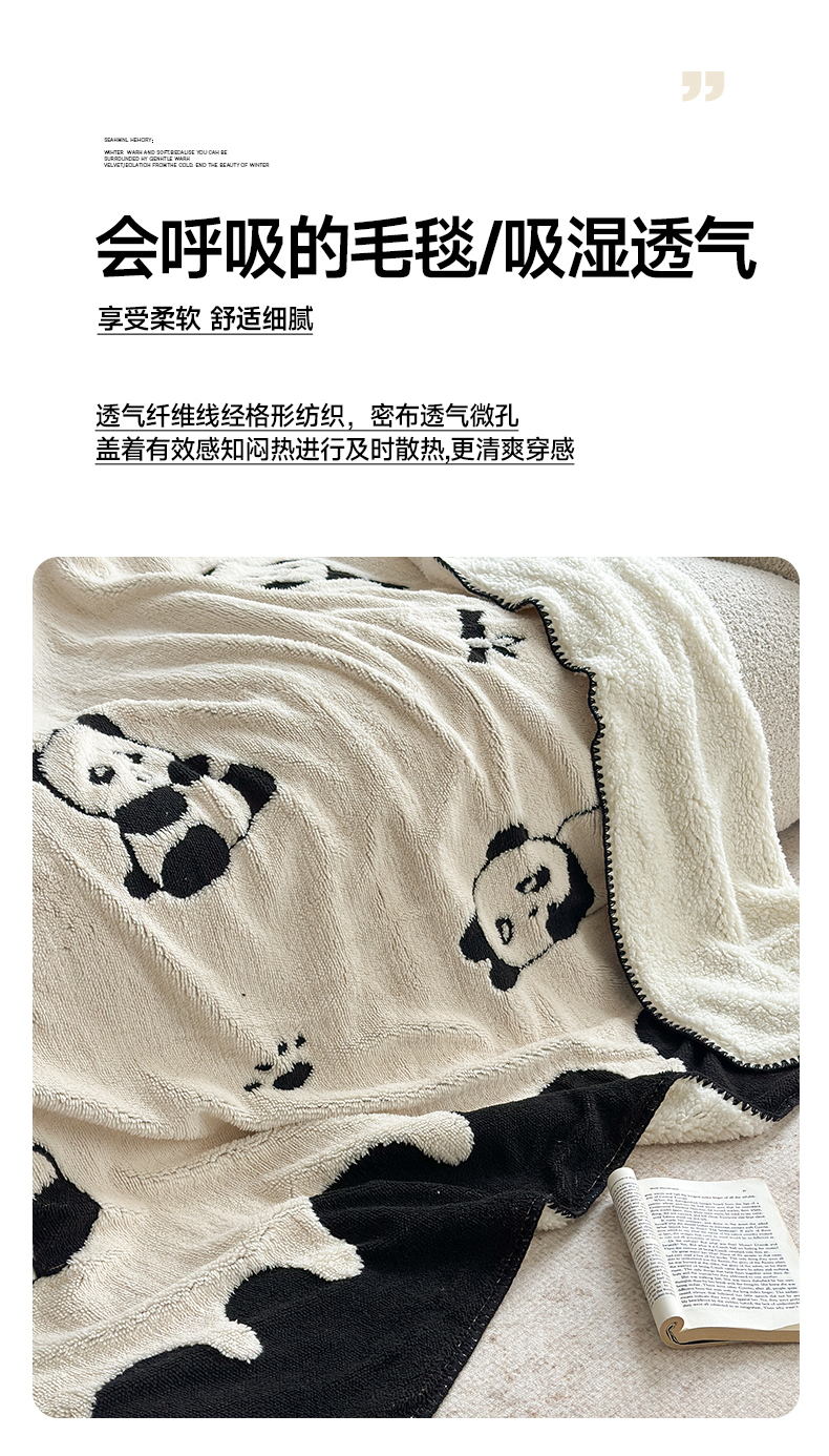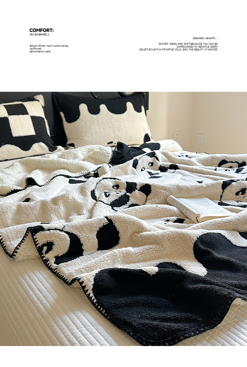 商品名称:小叮当家纺仓储工厂店 买家秀 爆款花型2025新款阳离子高克重羊羔绒保暖毯子外贸毯子 黑白萌熊