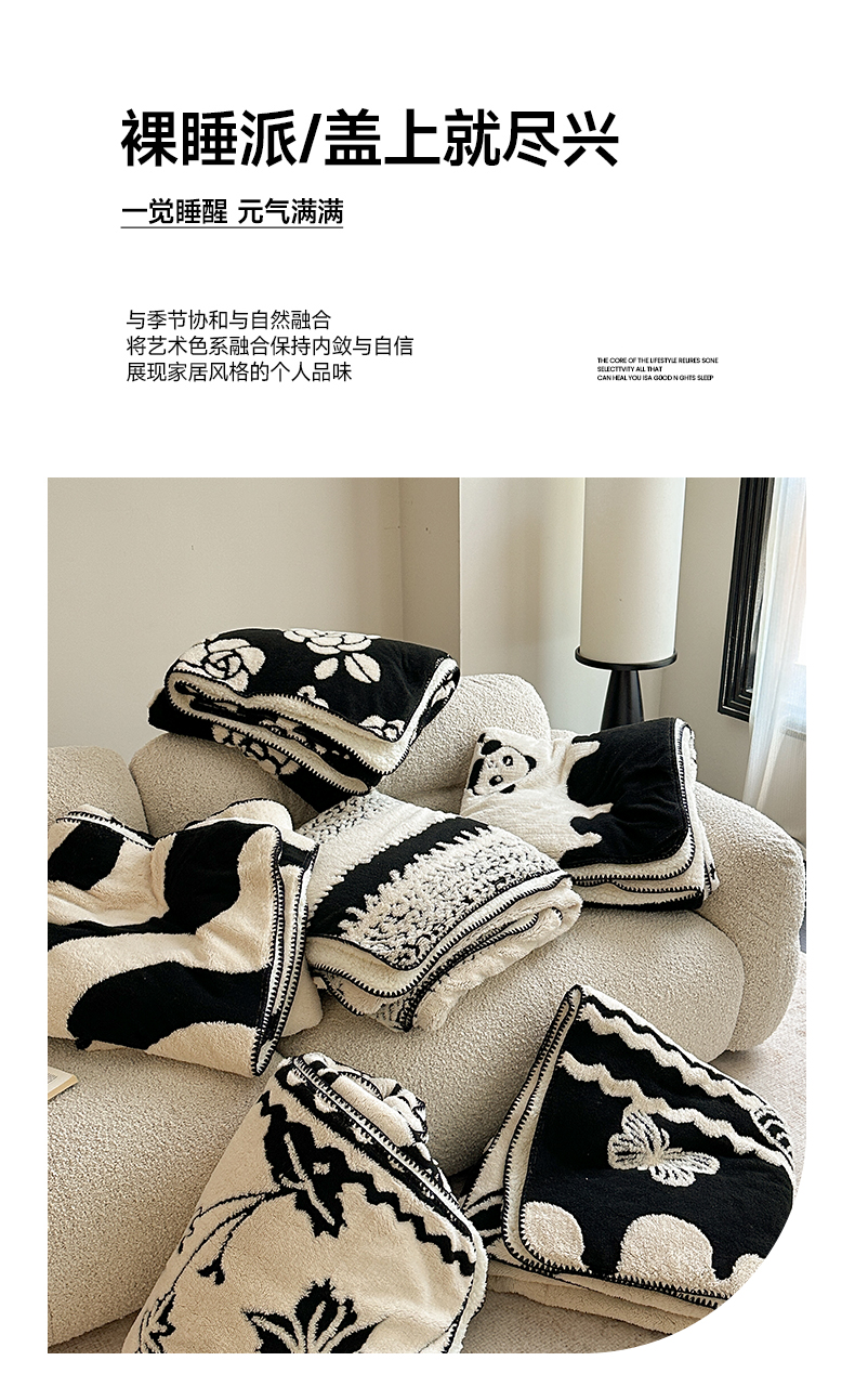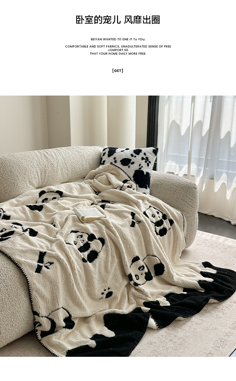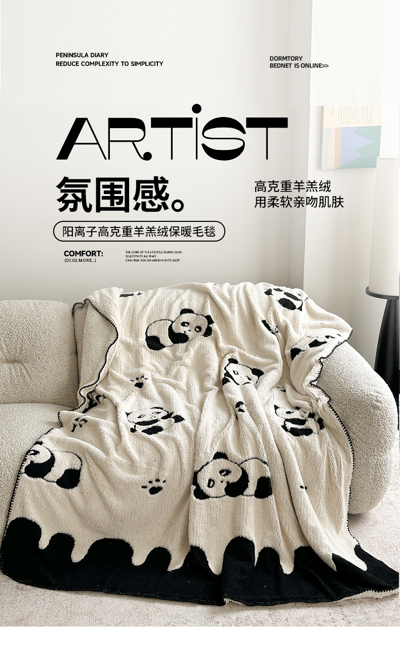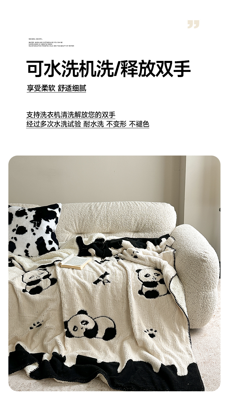 商品名称:小叮当家纺仓储工厂店 买家秀 爆款花型2025新款阳离子高克重羊羔绒保暖毯子外贸毯子 黑白萌熊