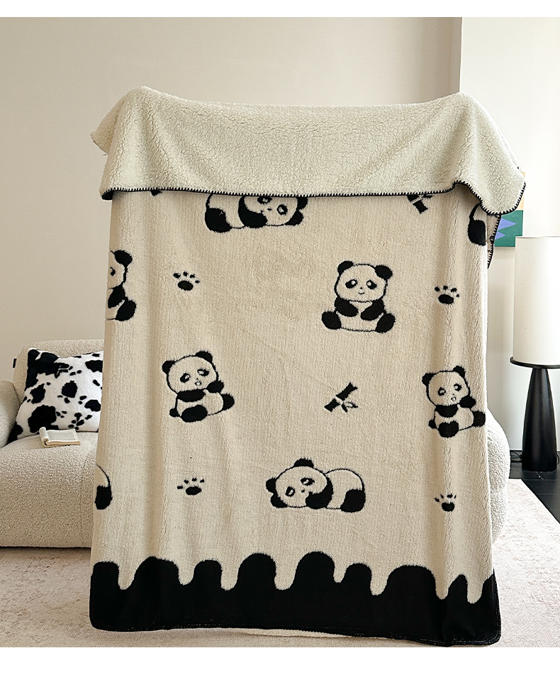 小叮当家纺仓储工厂店 买家秀 爆款花型2025新款阳离子高克重羊羔绒保暖毯子外贸毯子 黑白萌熊