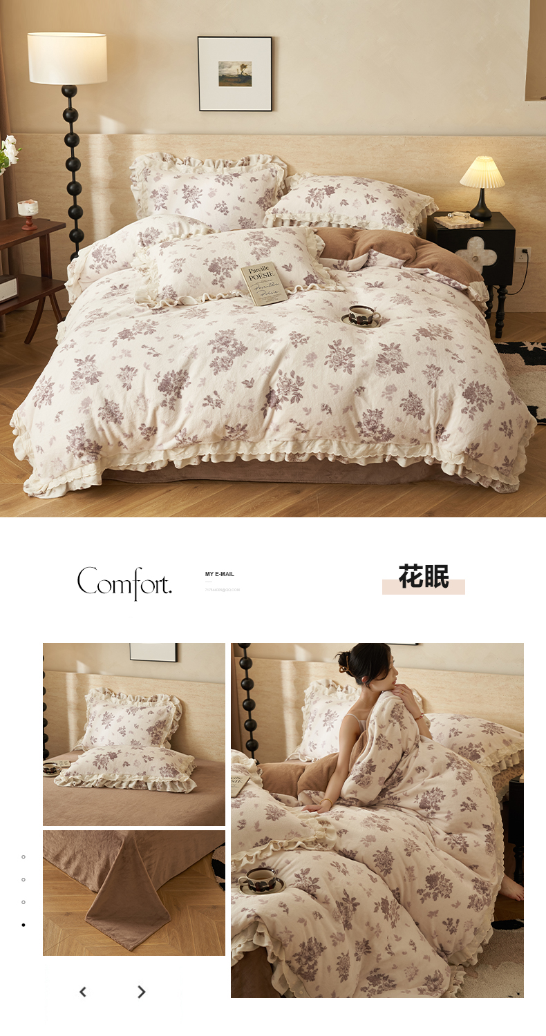 当前位置: 91家纺网 > 商品网购 > 床品套件 > 四件套 > 牛奶绒四件套 > 晨曦家纺 2025新款加绒加厚230克少女风双层花边牛奶绒印花四件套 梦想花园