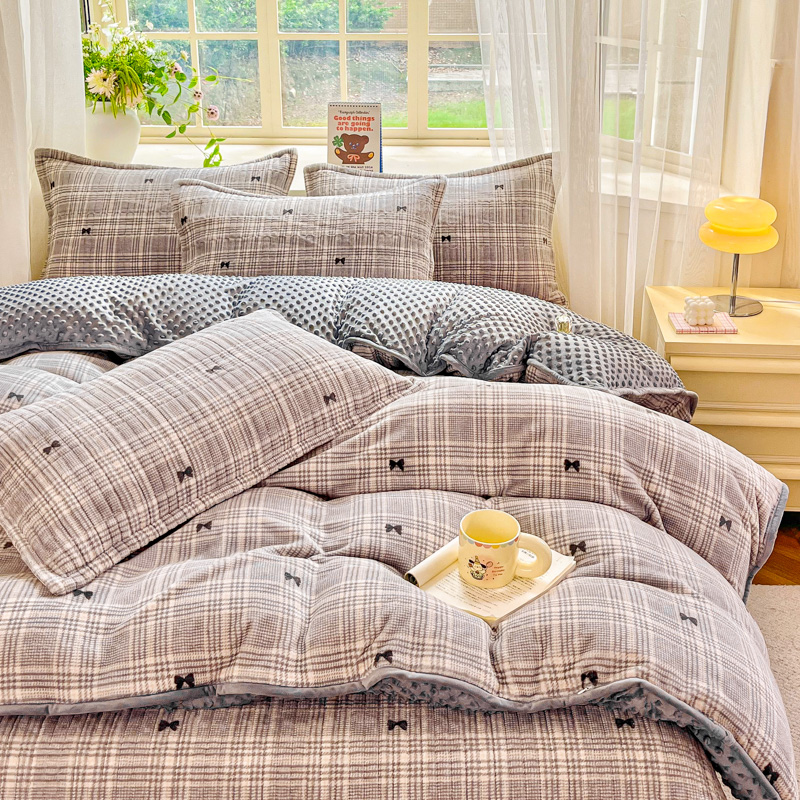 商品名称:尚美 2025新款豆豆绒高克重床盖被套四件套 黑色蝴蝶结