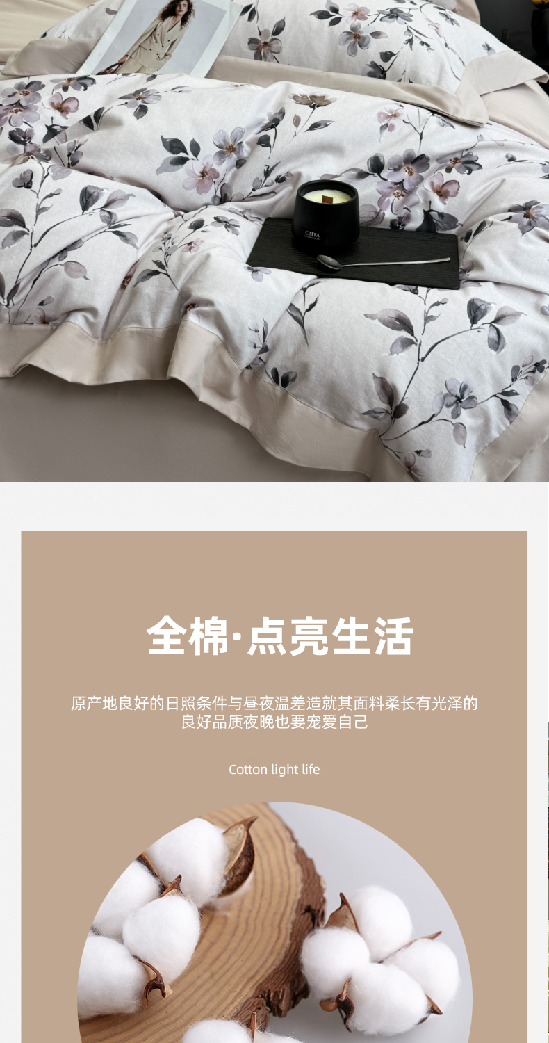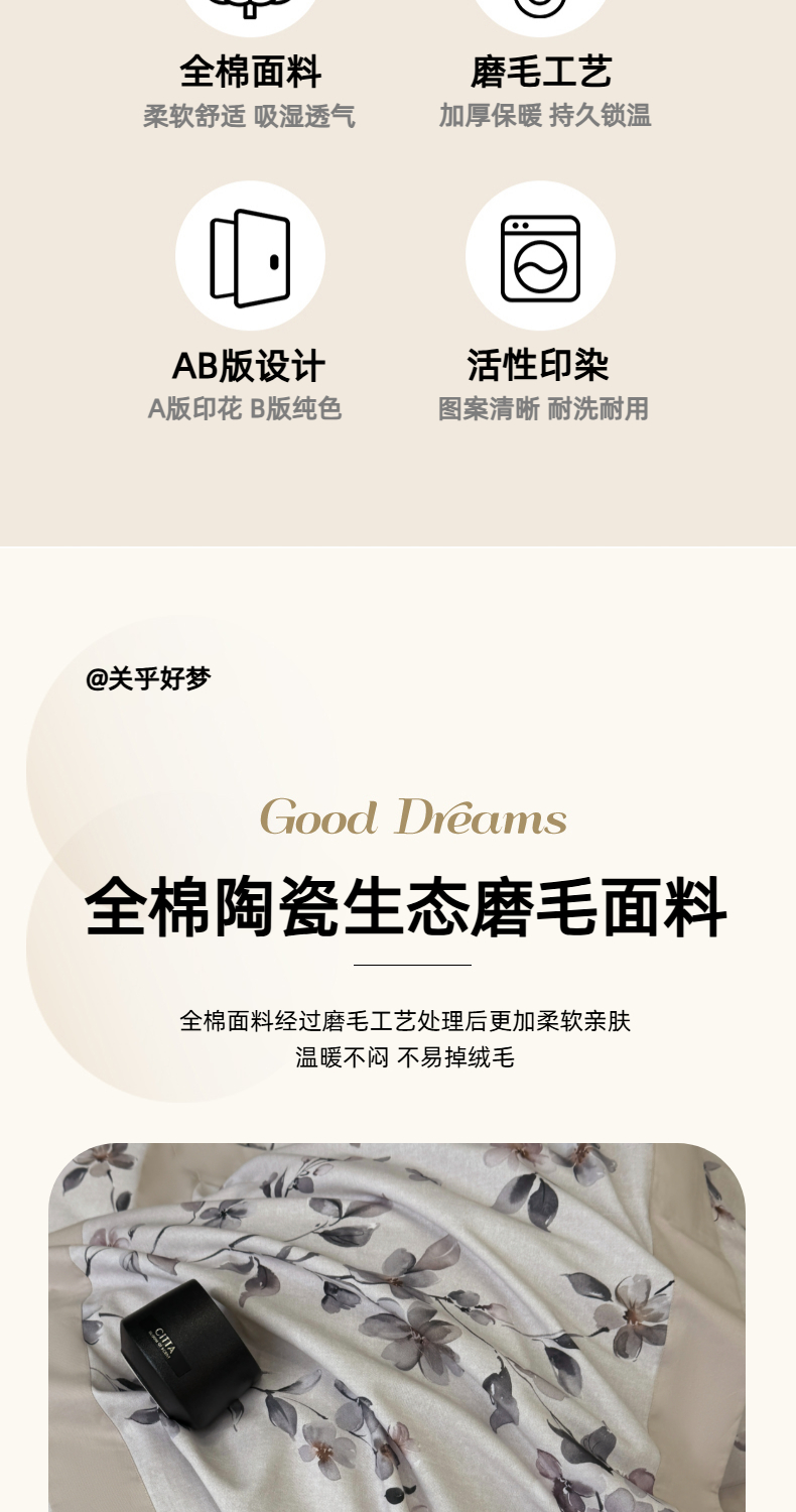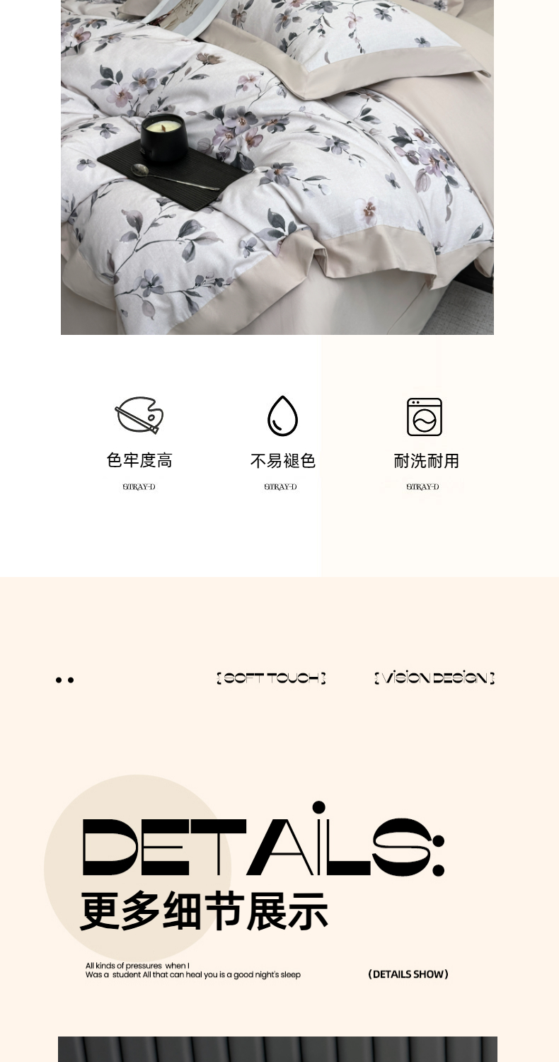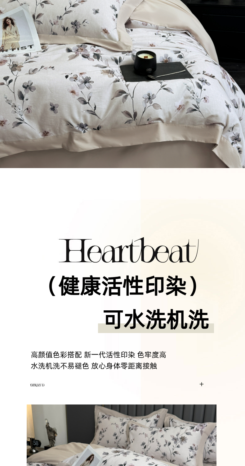 (总)乐蔻家纺 2025新款全棉拼边陶瓷生态磨毛四件套,春苑 米,格意,花蔓,花棠 米,梦园 绿,浅梦 米驼,倾语 灰,柔黛 豆沙,素暖 米,叶迹 绿,余生浅茉 米,悦野 米