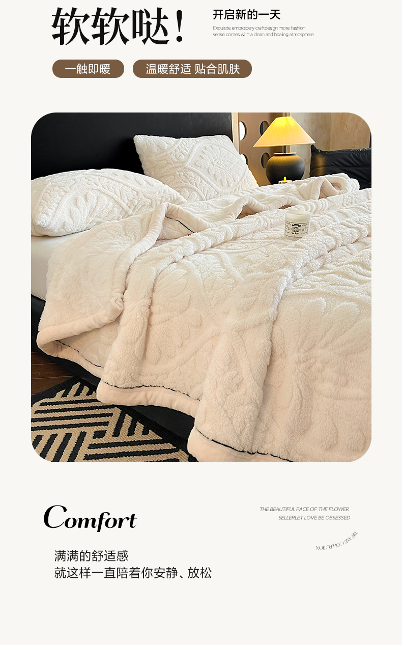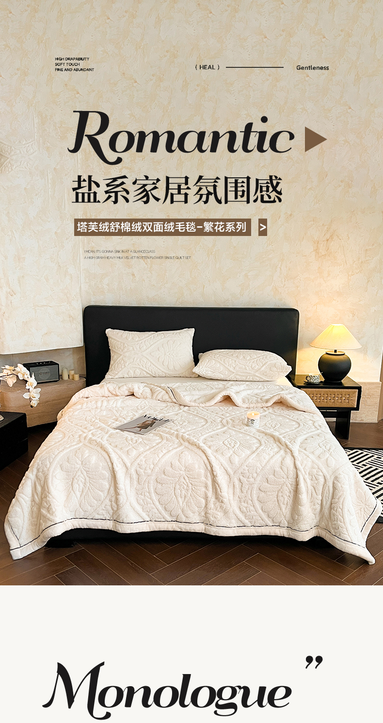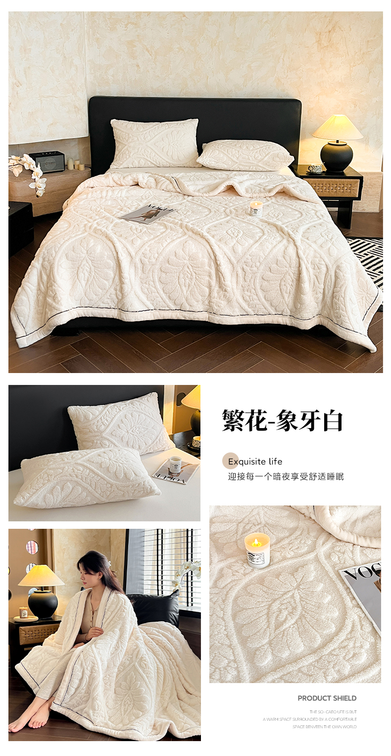 当前位置: 91家纺网 > 商品网购 > 毛毯休闲毯绒毯 > 毛毯 > 莱家富 2026新款塔芙绒舒棉绒单层毯-繁花系列(可供跨境外贸抽空压缩爆款首选) 繁花-象牙白