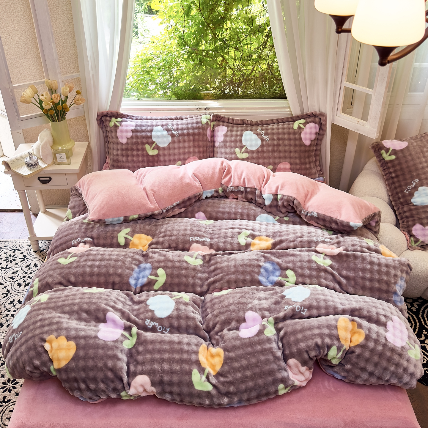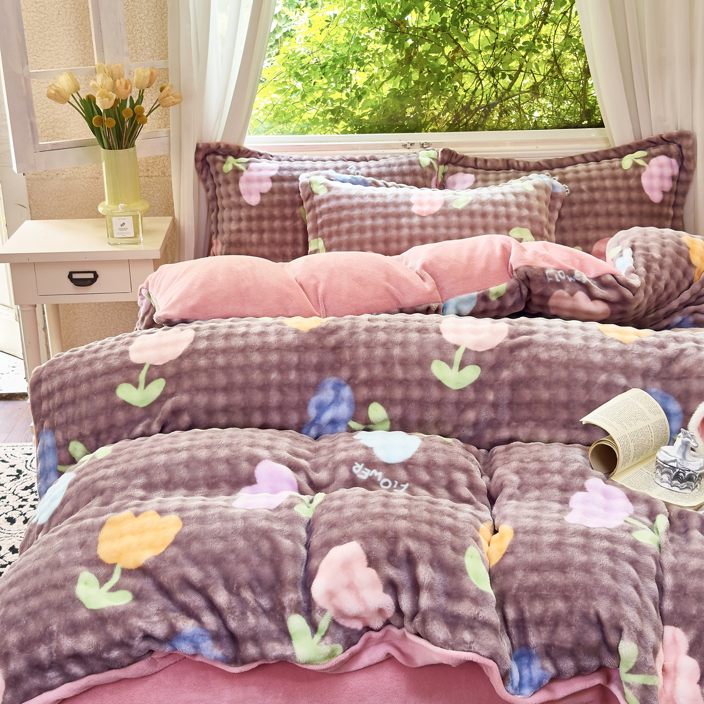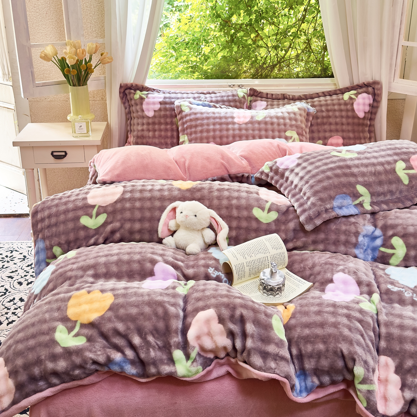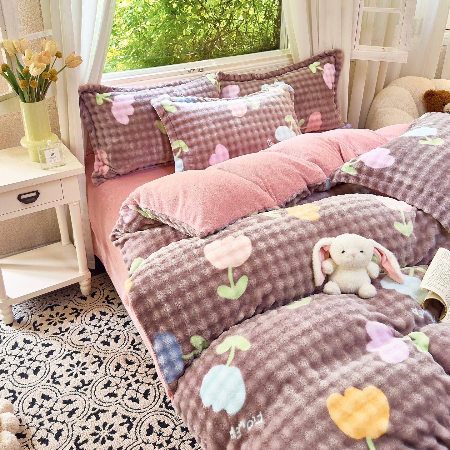 梦莱斯 2025秋冬新款高克重牛奶绒四件套 郁金香