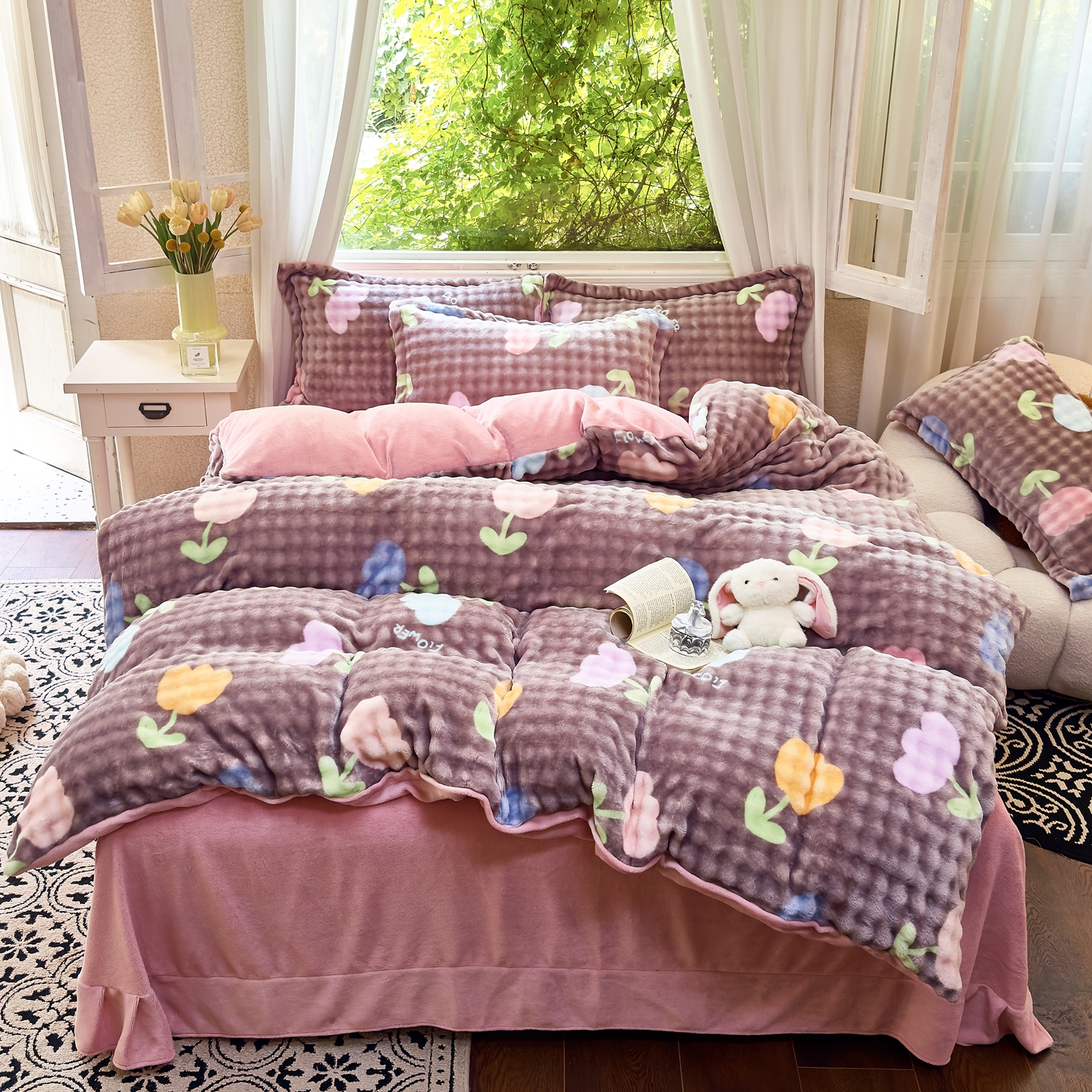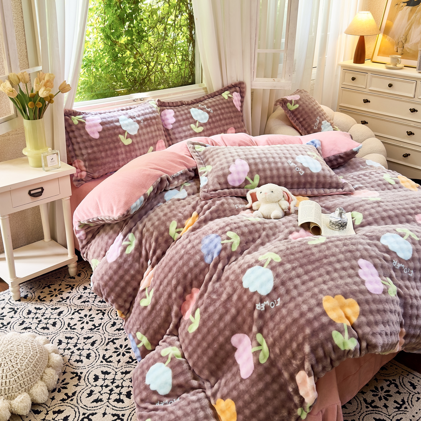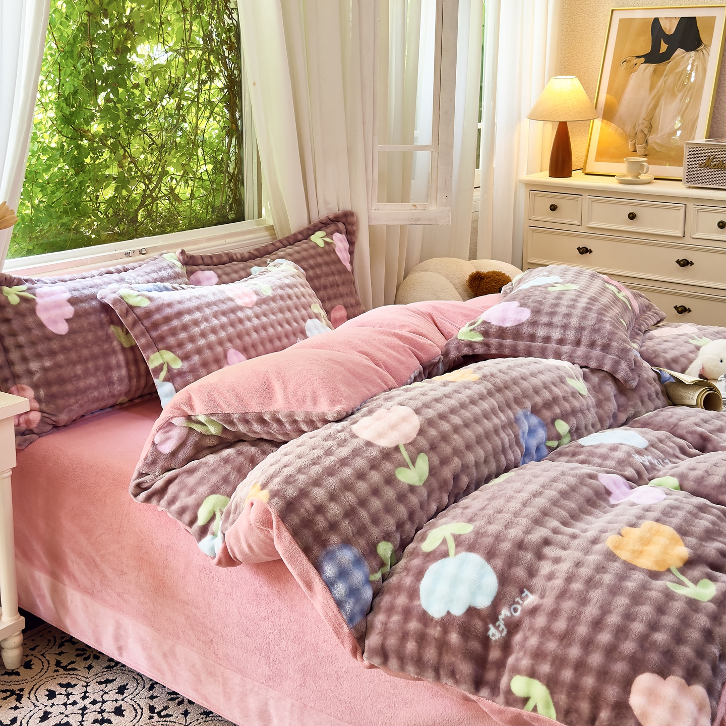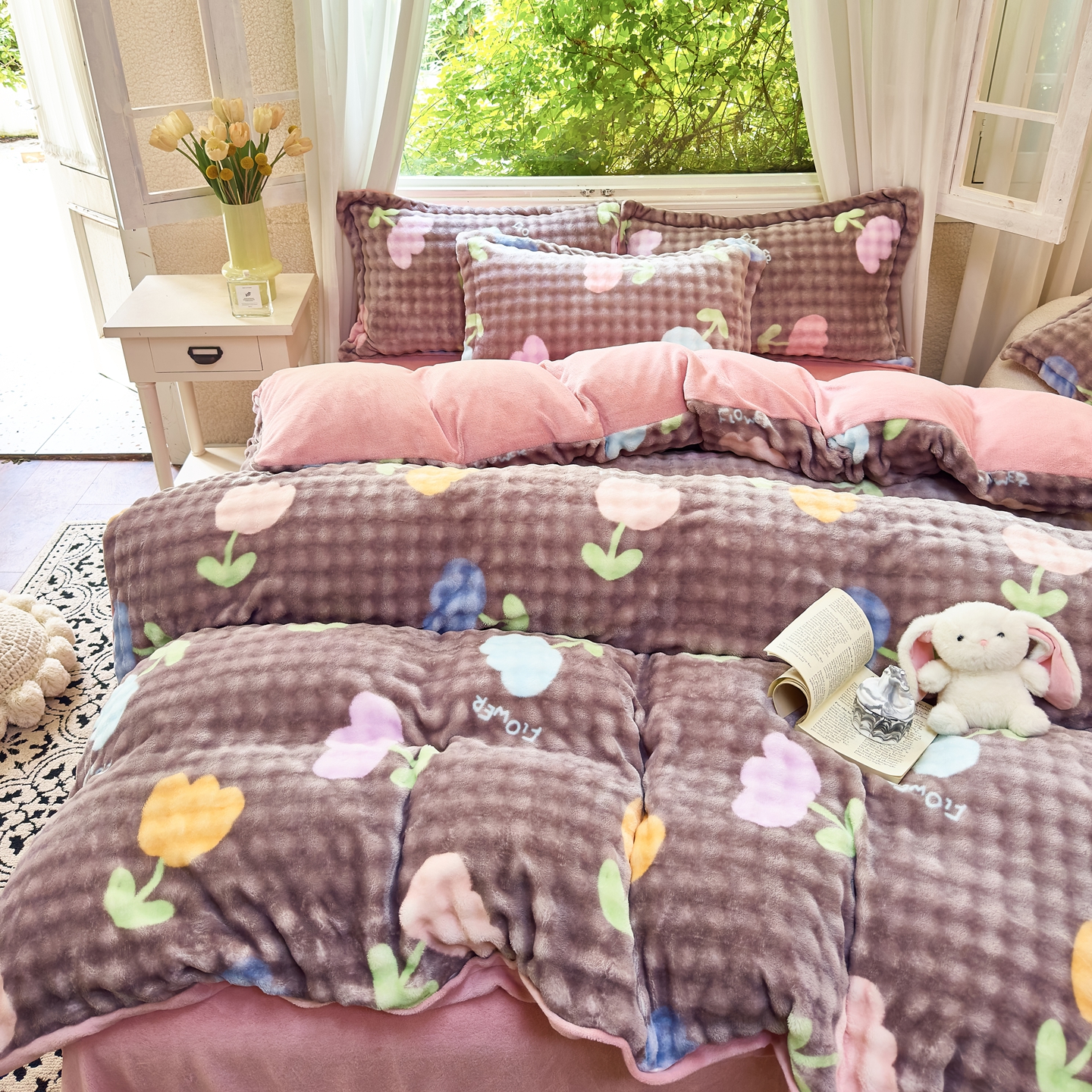 梦莱斯 2025秋冬新款高克重牛奶绒四件套 郁金香